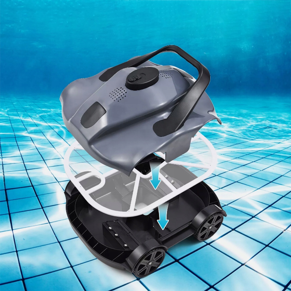 , питаемое на застроенной батарее, этот бассейн пылесос устраняет проблему запутанных кабелей, что делает его более удобным в использовании. Он предлагает большую мобильность и гибкость, что позволяет эффективно очищать бассейн без необходимости в шнурке питания.