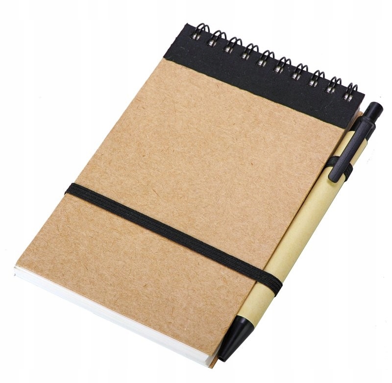 Блокнот с ручкой на 70 гладких листов. Бумага изготовлена из переработанного сырья, пластиковые детали биоразлагаемы.
