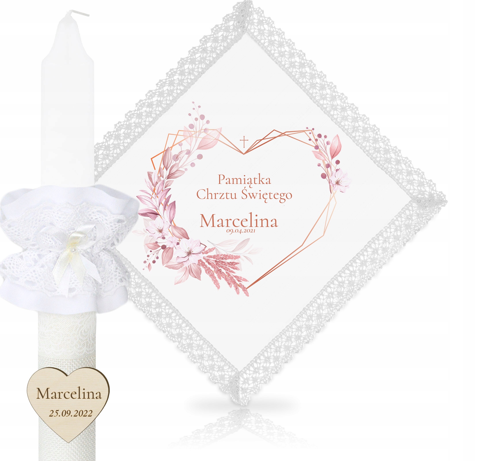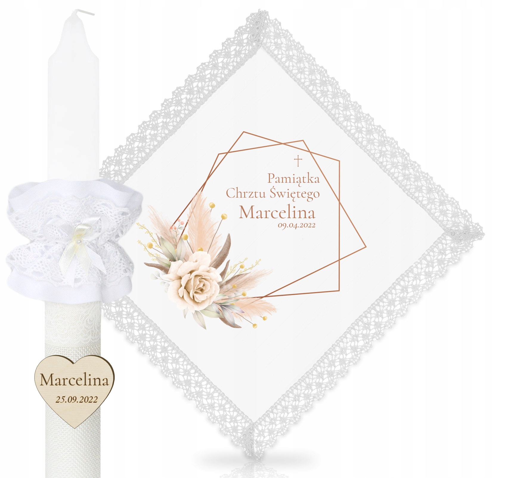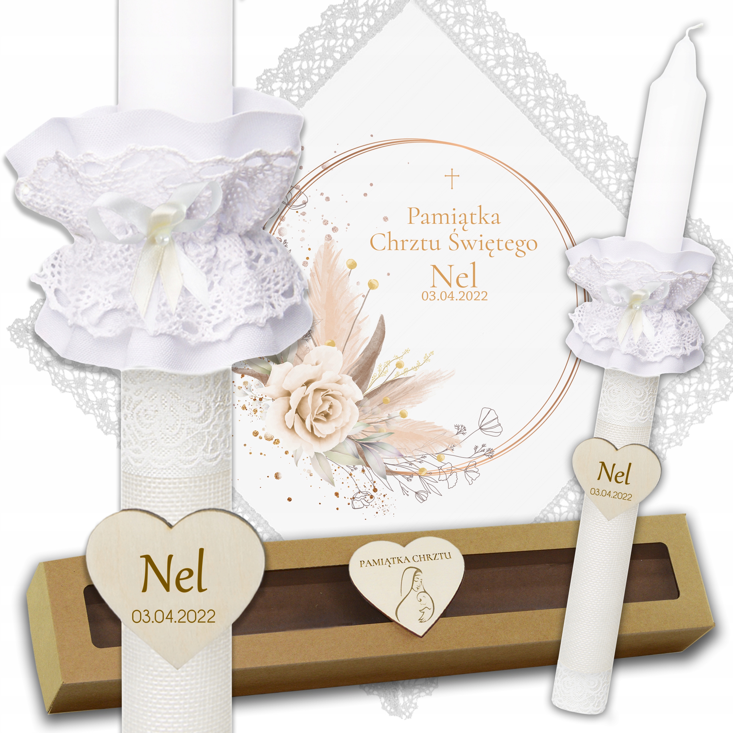 ПЕРСОНАЛИЗИРОВАННЫЙ НАБОР КРЕЩЕННЫХ СВЕЧ С КРУЖЕВОМ