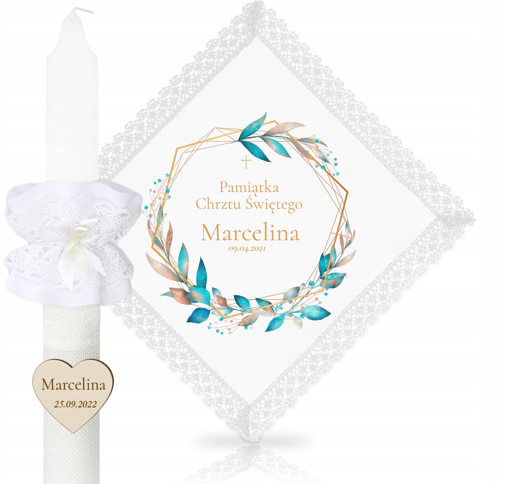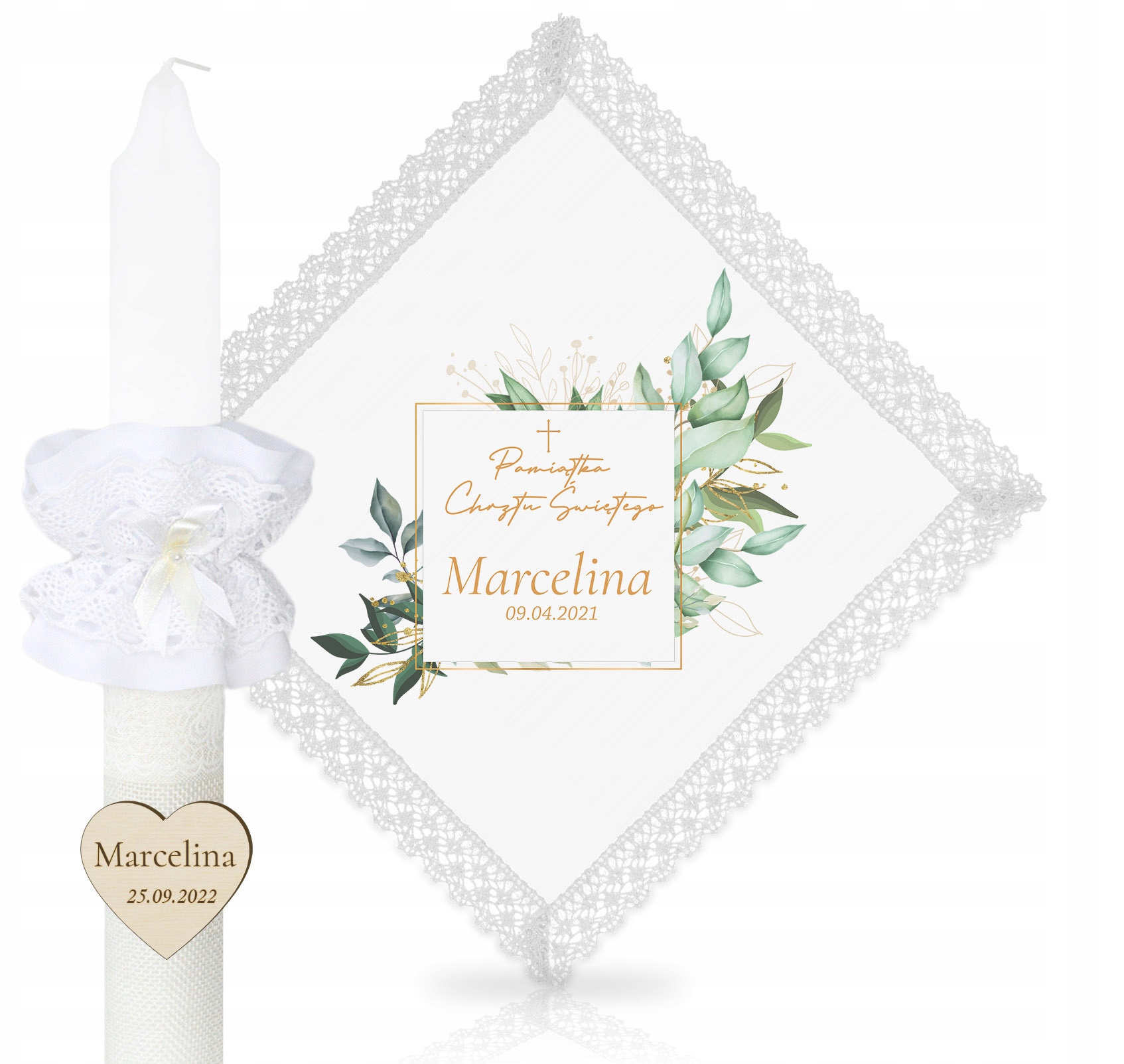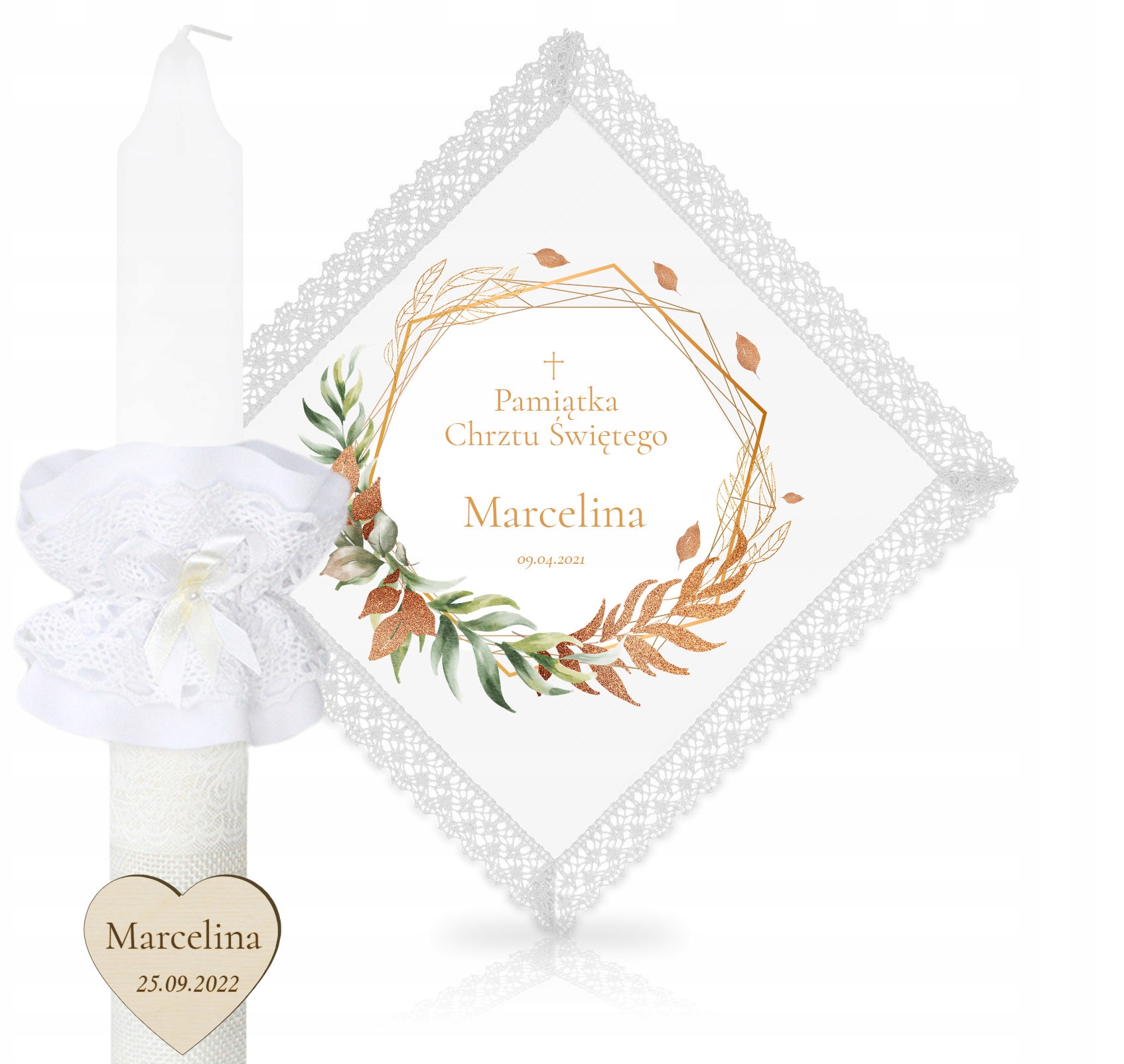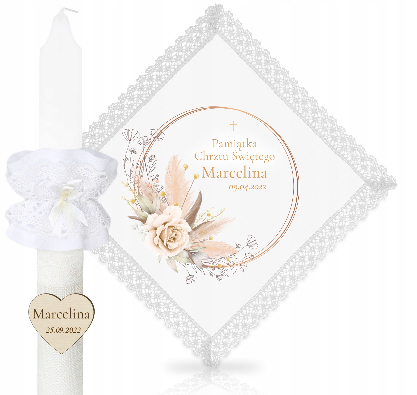 ПЕРСОНАЛИЗИРОВАННЫЙ НАБОР КРЕЩЕННЫХ СВЕЧ С КРУЖЕВОМ