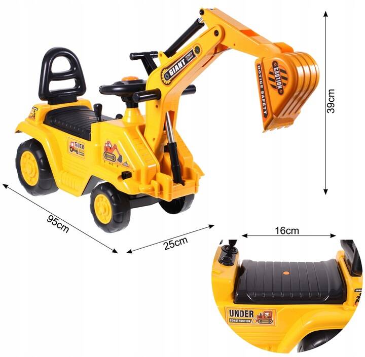 Совершенно безопасное, отличное транспортное средство для ребенка, которое можно использовать дома для совершенствования навыков вождения строительной техники.