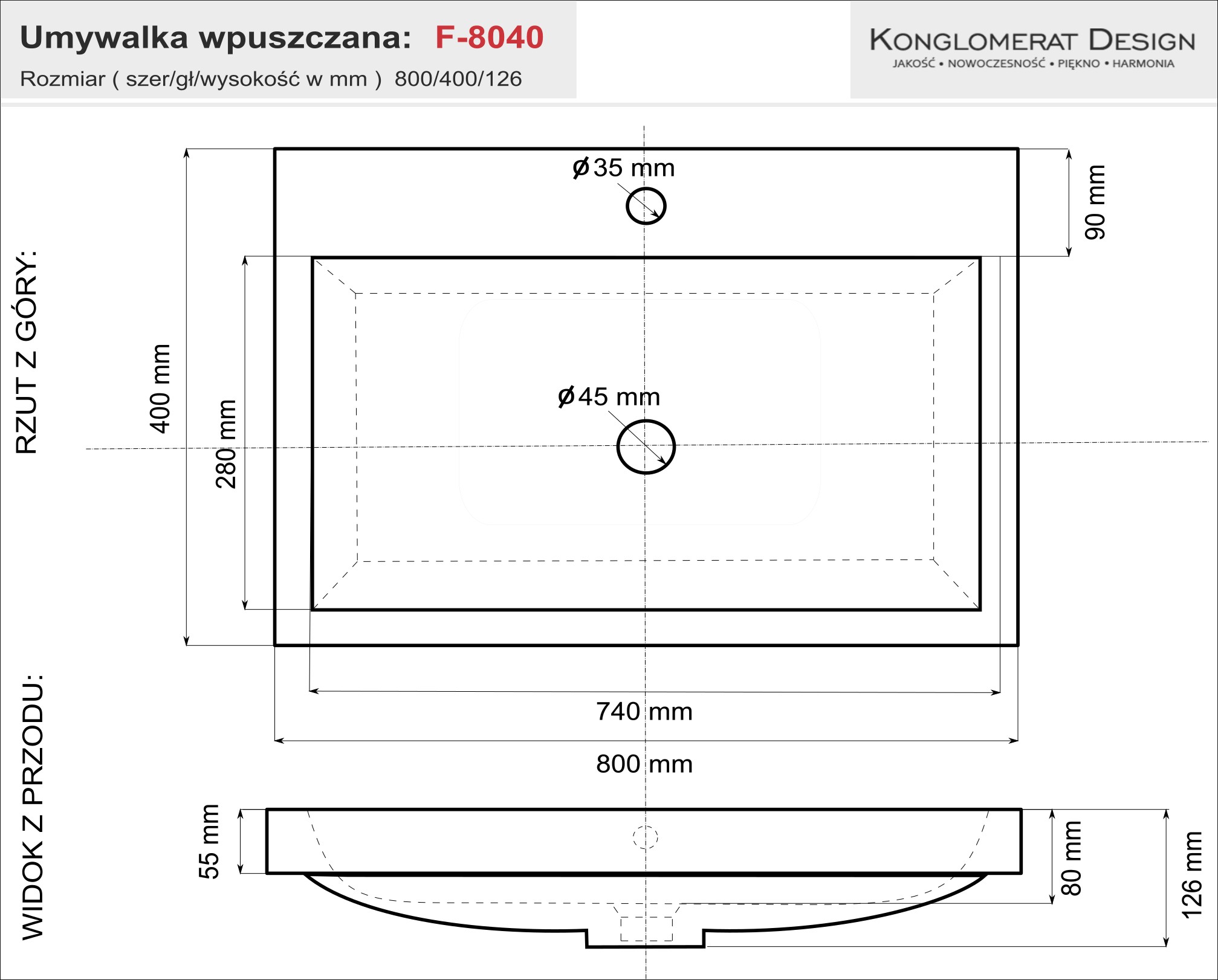 Эксклюзивный прямоугольный умывальник FONDA 80 из конгломерата с покрытием NanoShine F-8040 apm.Изделие встраиваемое в столешницу, мебель 80х40 см