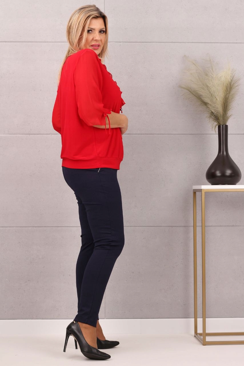 Блузка с рукавом 3/4 и рюшами в универсальных цветах – идеальный элемент вашего гардероба, который придаст вам великолепный, элегантный вид в любой ситуации. Материал нежный на ощупь и обеспечивает комфорт при ношении. Это отличный выбор для повседневных прогулок, работы и особых случаев. V-образный вырез с добавлением завязок и отделкой воланами придаст уверенности в себе и подчеркнет достоинства вашей фигуры.