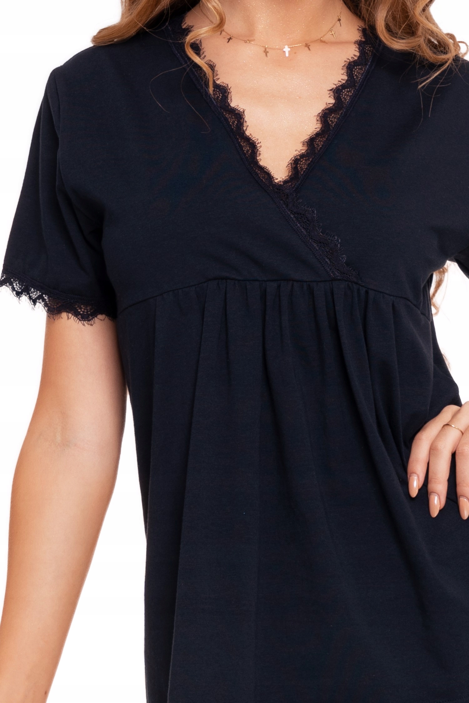 Откройте для себя элегантность и комфорт в нашей темно-синей женской пижаме с кружевной отделкой. Это не только практичное, но и очаровательное решение для каждой женщины, желающей провести летние ночи с полным комфортом и ноткой романтики.