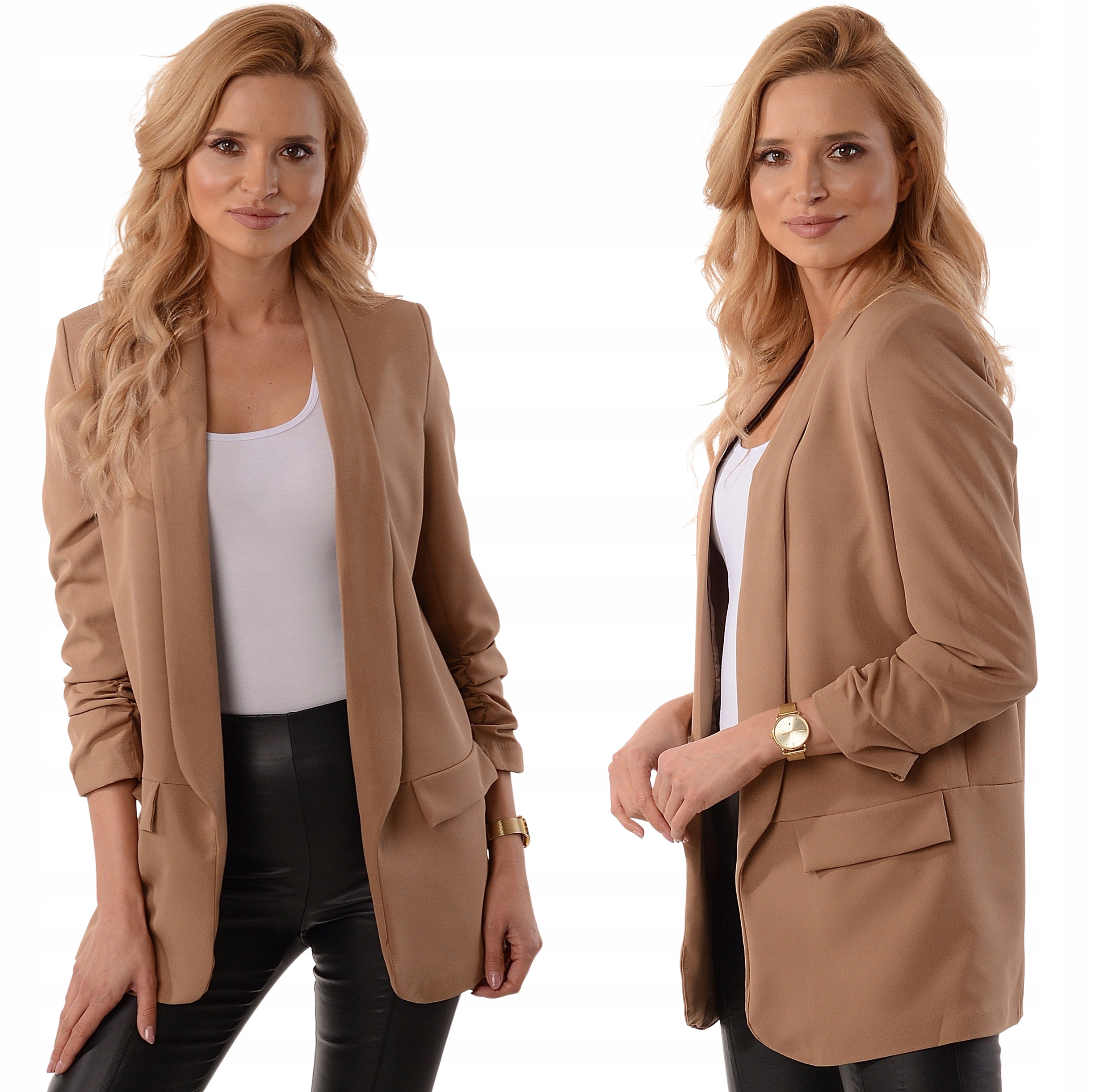 Идеальный дополнение к работе для работы, университетов или на вечер. Оригинальный символ добавляется драпированными рукавами с длиной 3/4. Имитационные карманы по бокам с эффективными клапанами украшают куртку. Свободный срез, с подкладкой и мягкими подушками в руках.