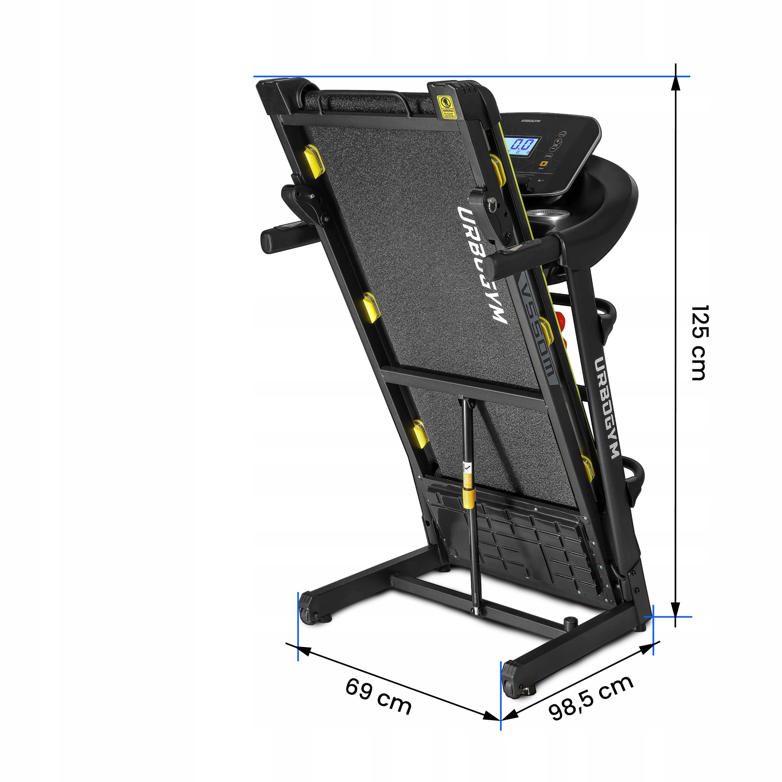 , что чрезвычайно важно, на беговой дорожке, которую мы продаем, имеет уникальную систему подъема на газовом цилиндре b>, благодаря которой после складывания она занимает только один квадратный метр! Распространение беговой дорожки для использования составляет только один щелчок. Все длится несколько секунд. Кроме того, используемые транспортные колеса позволяют свободно установить беговую дорожку в любом месте вашего дома после тренировки. Таким образом, владельцы меньших помещений будут очень довольны возможностью сложить устройство и установить его в месте, где беговая дорожка не займет место.