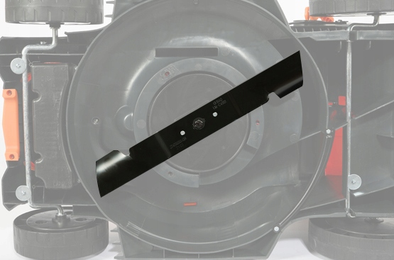 Благодаря своей аэродинамической форме вращающийся нож создает сильный поток воздуха, который поднимает лезвия и способствует выбросу травы в корзину.