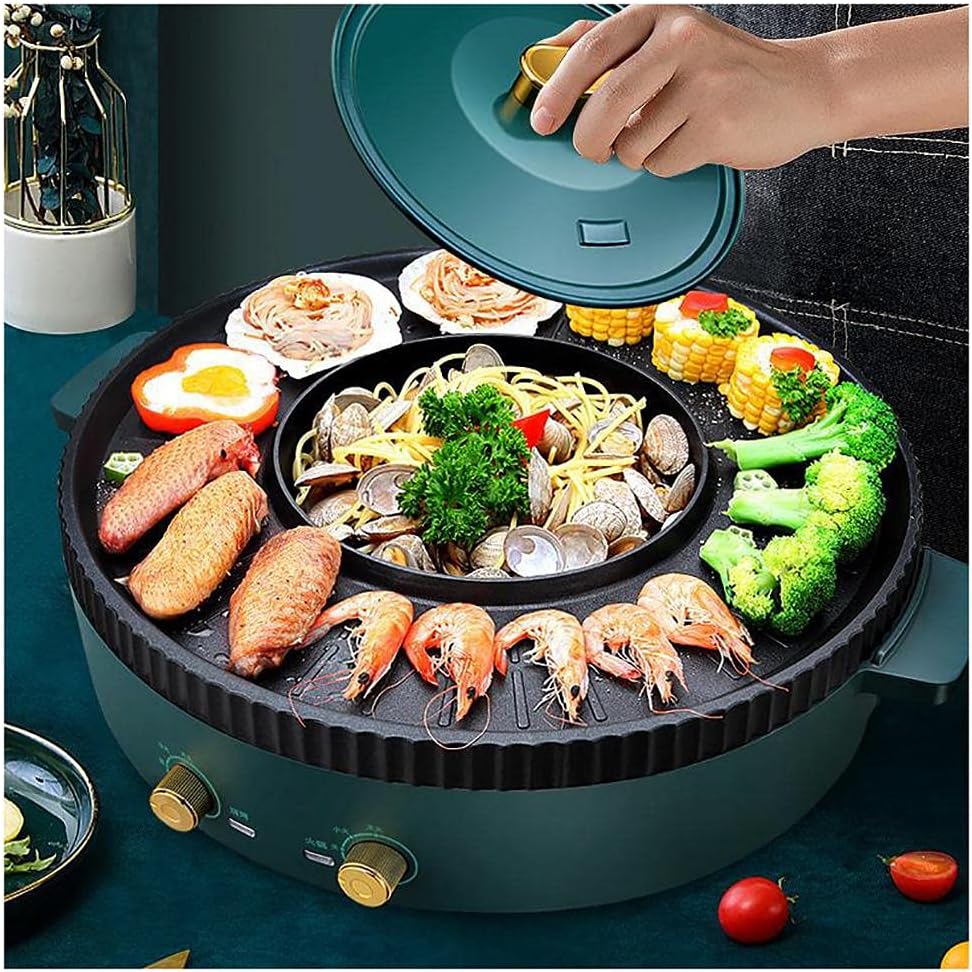 2 в 1 портативном электрическом гриле, Hobu Hot Pot с электрическим тайским/корейским грилем, гриль-кастрюль для 2-8 человек, большой зеленый. h1>