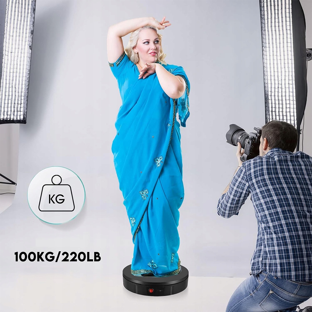 Электрический вращающийся диск имеет диаметр 30 см и максимальная нагрузка 100 кг. Он обладает исключительной стабильностью и грузоподъемностью, а также может поддерживать фотографию продуктов и моделей с высокой силой. В нижней части электрического поворотного стола есть 6 не -скользящих прокладков, которые предотвращают скольжение во время вращения.