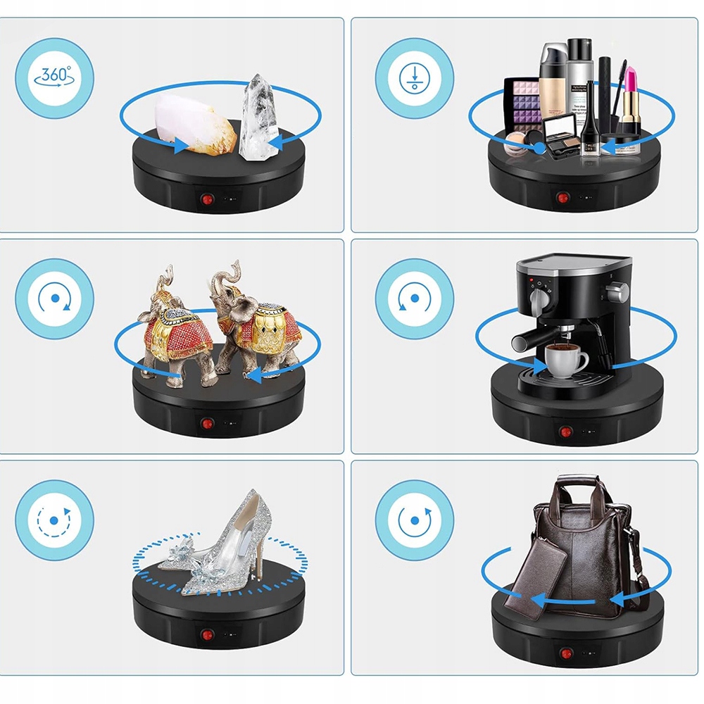 Вы можете использовать этот электрический поворот для фотографии, дисплей ювелирных изделий, живое видео, цифровая электроника, демонстрация продуктов, магазины, тематические выставки, выставки фотографий, рекламные и различные продукты для демонстрации продуктов на 360 градусов.