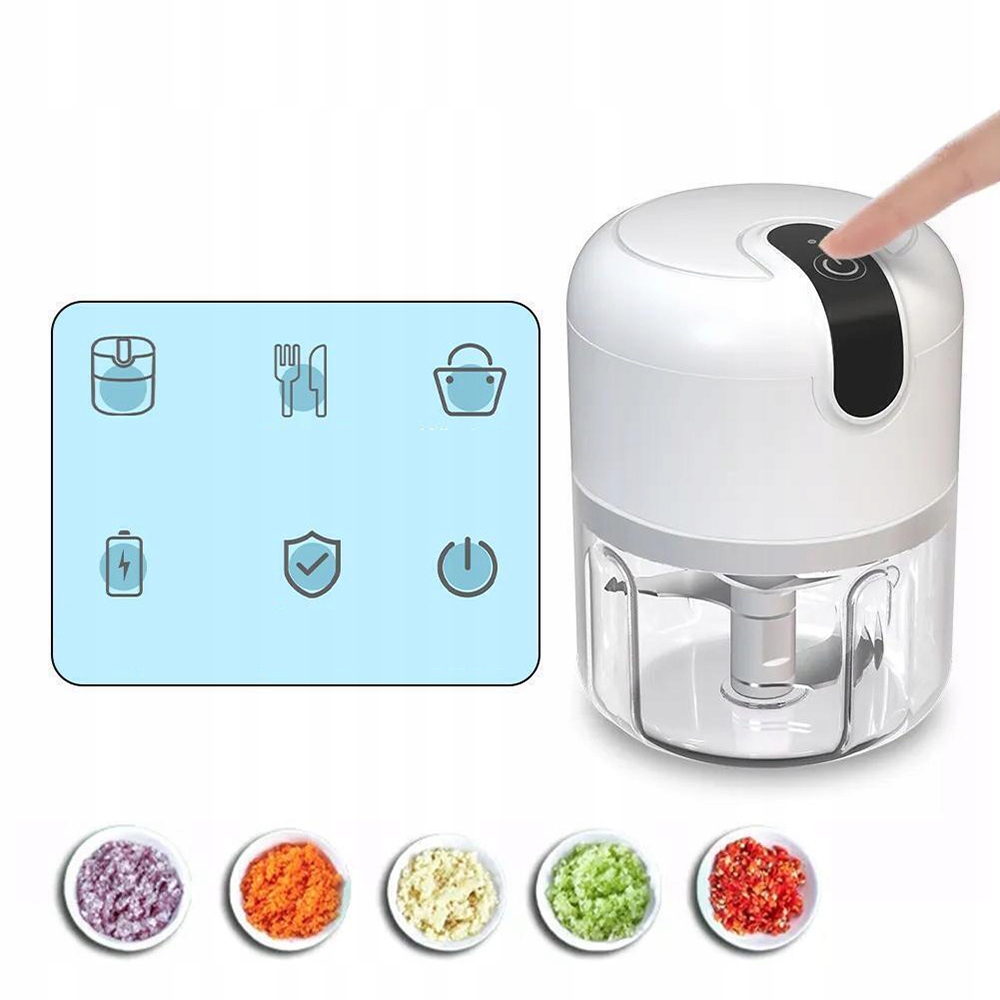 - Мини -электрический разрыв чеснока очень полезна на каждой кухне, наша электрическая шлифовальная шлифовка имеет две миски (250 мл и 100 мл), благодаря тому, что вы можете нарезать гадки, олив, гарель, яйн и другие ракушки.