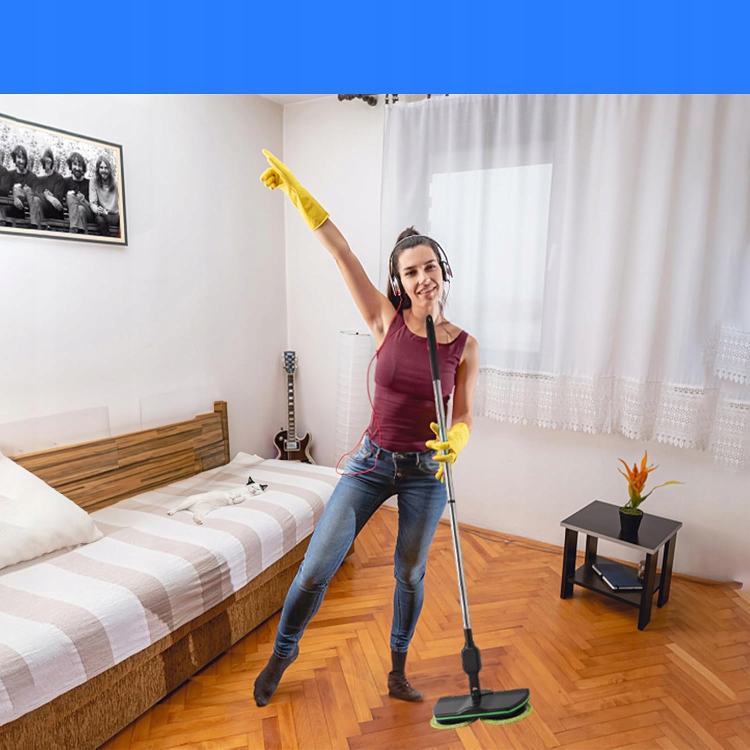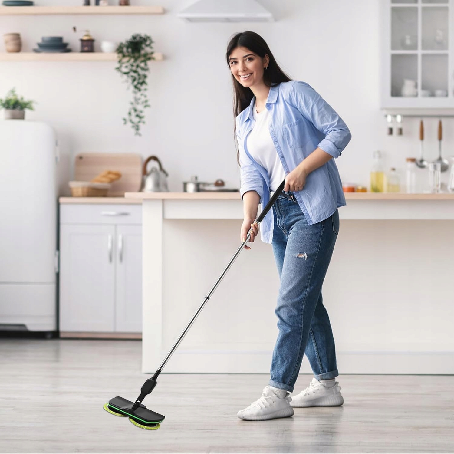 ☑️☑️Тонкая насадка для швабры, которая достигает даже труднодоступных мест, например, под столом, столом или кроватью.