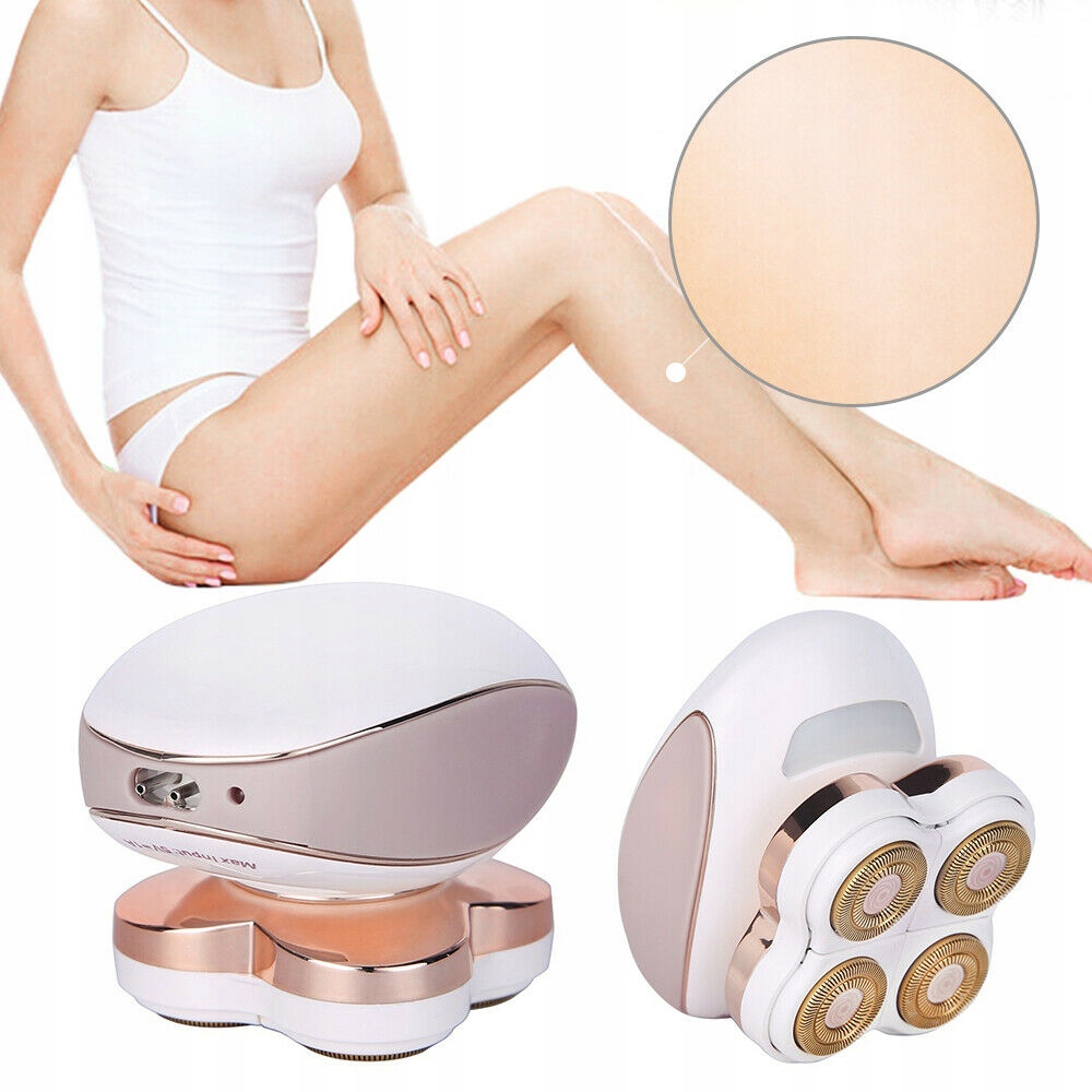 Эпилятор тела допускает немедленное и безболезненное удаление волос без воска. Бритва имеет четыре головы, которые отлично подходят для чрезмерных волос, бикини или подмышек.