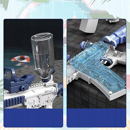 - 🌊electric Водяной пистолет был разработан со встроенным резервуаром для воды, который можно сразу заполнить, открывая крышку. Водный начинок был спроектирован с универсальными спецификациями рта бутылки, поэтому вы можете свободно расширить вместимость воды, просто соединяя бутылку (бутылка не включена в упаковку).