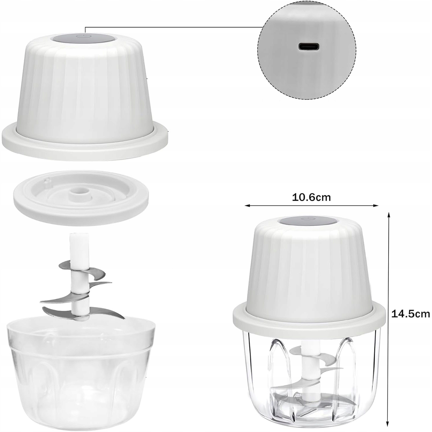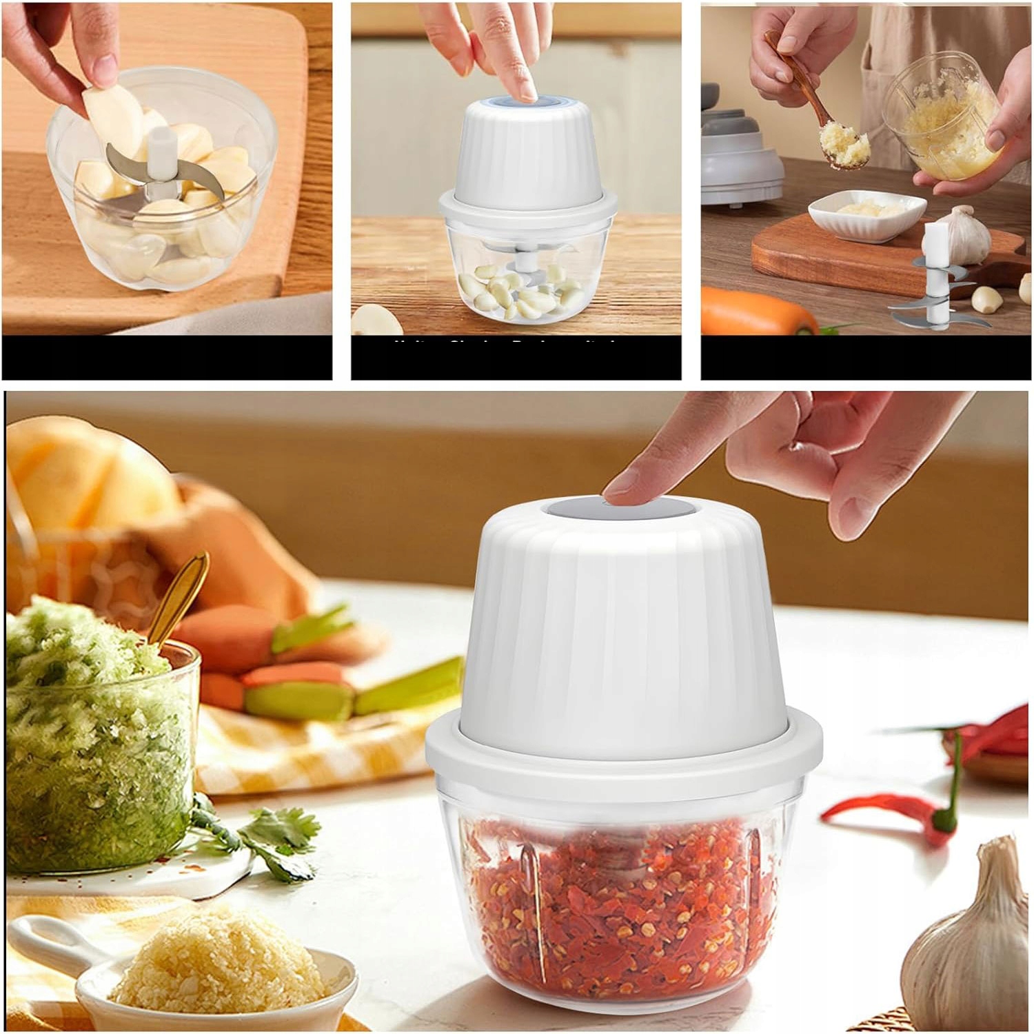 Электрический измельчитель чеснока и USB -овощи, 400 мл + 6 лезвий