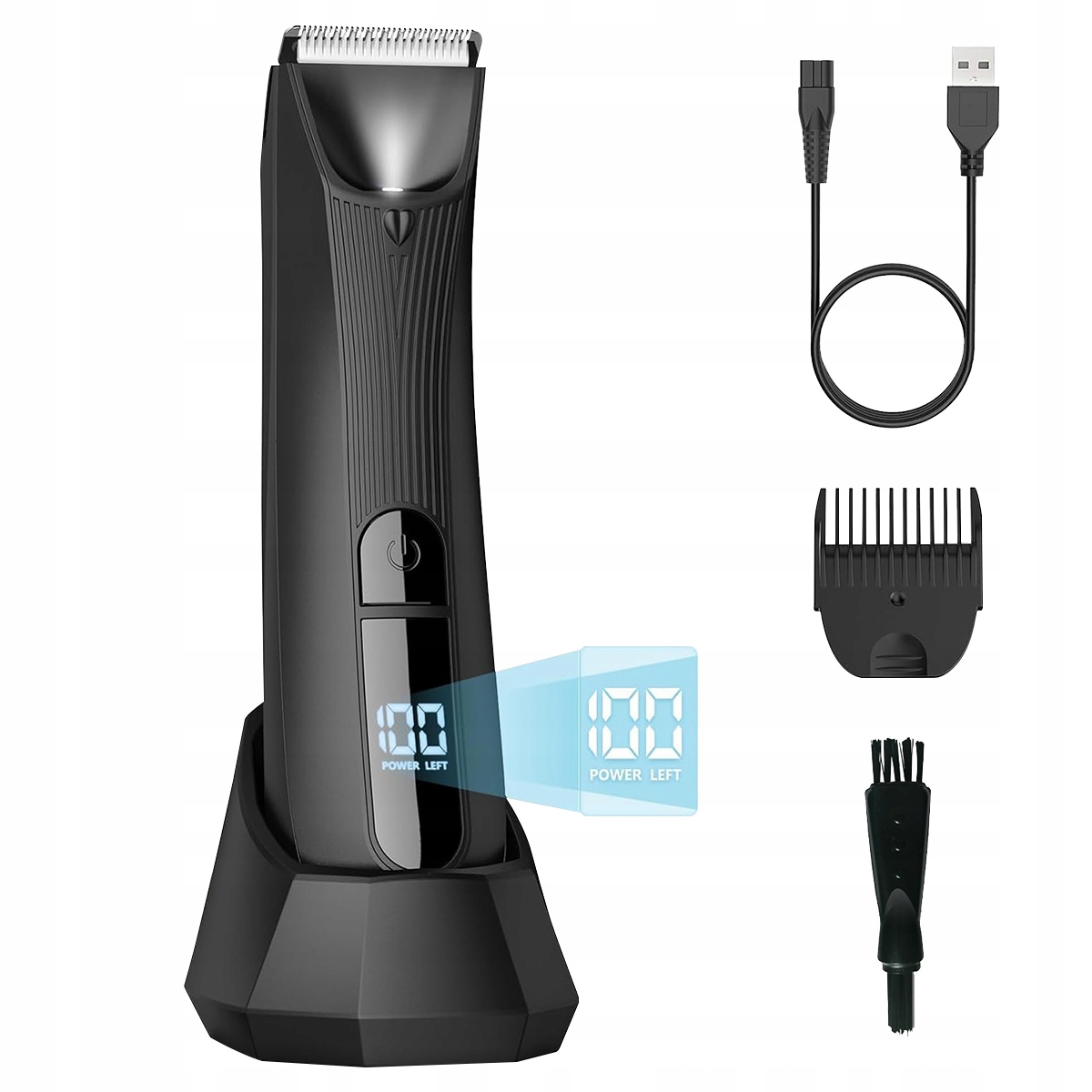 Интимный бритвенный человек, электрический аппарат для бритья для мужчин Youkuke для мужчин, профессиональная водонепроницаемая машина для резки волос на теле IPX7 со светодиодным освещением, дисплеем и стоячей зарядной станцией (черная) H1>