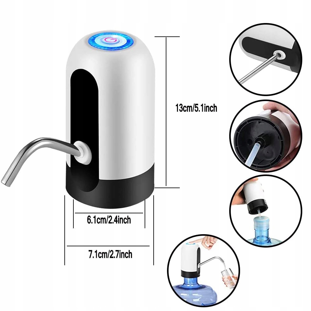 - -Простой в использовании портативный диспенсер для воды: насос для питьевой воды с одной кнопкой, просто нажмите, чтобы включить/выключить. Кнопки очень чувствительны.