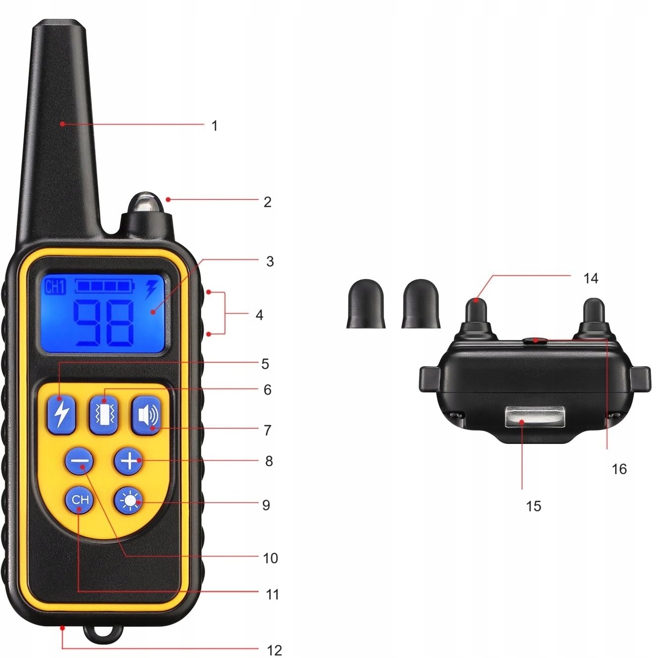 - диапазон : до 800 метров, обеспечивая контроль над собакой даже издалека. Встроенный в светодиодном свете на воротнике позволяет собаке находиться в темноте
