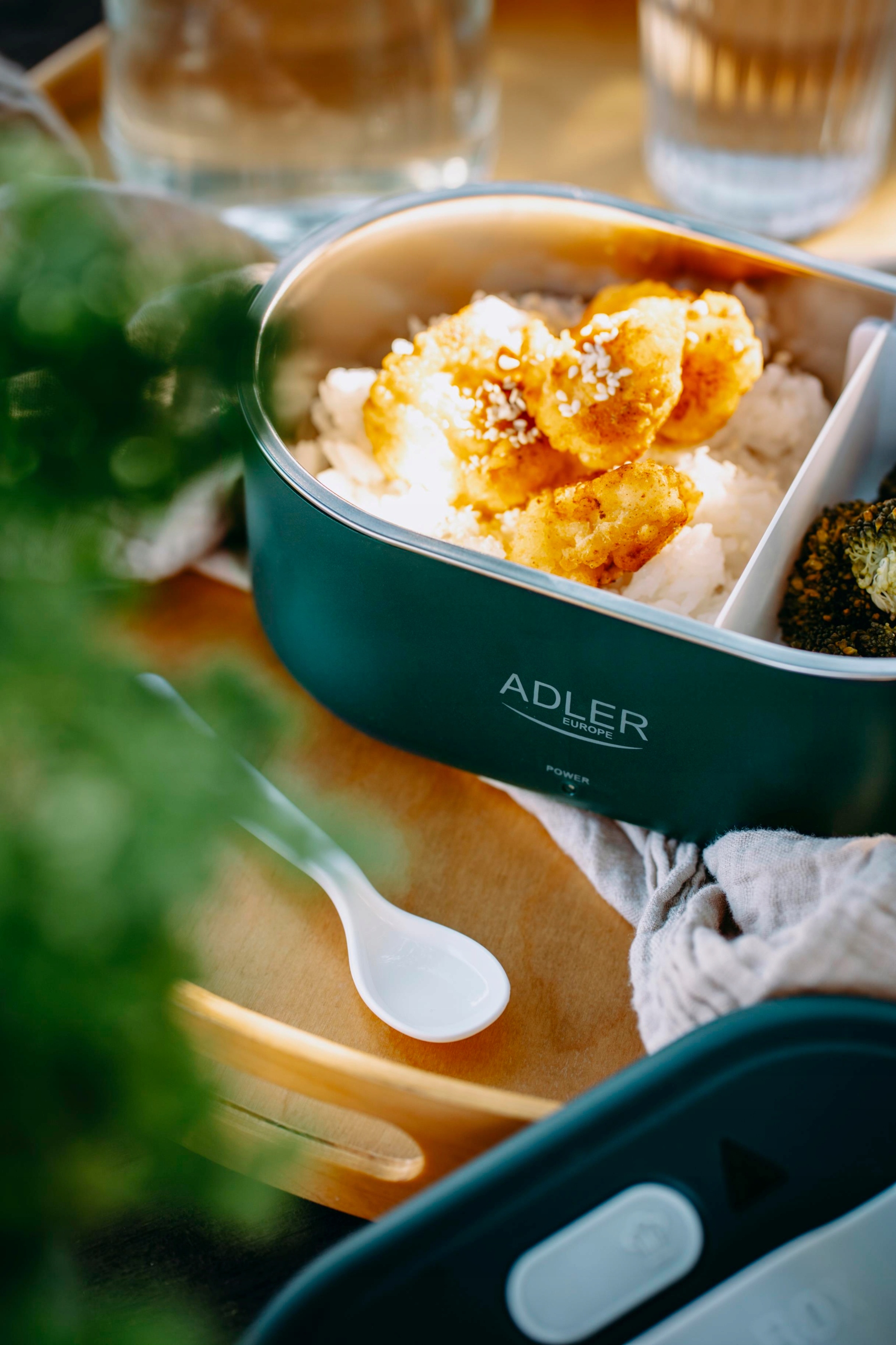 Объем 800 мл | Нагревает еду до 70°C и сохраняет ее теплой | Металлический контейнер из нержавеющей стали с перегородкой и ложкой | Сетевой источник питания | Полностью съемный шнур питания | Можно мыть в посудомоечной машине | Цвет ланчбокса — ЗЕЛЕНЫЙ