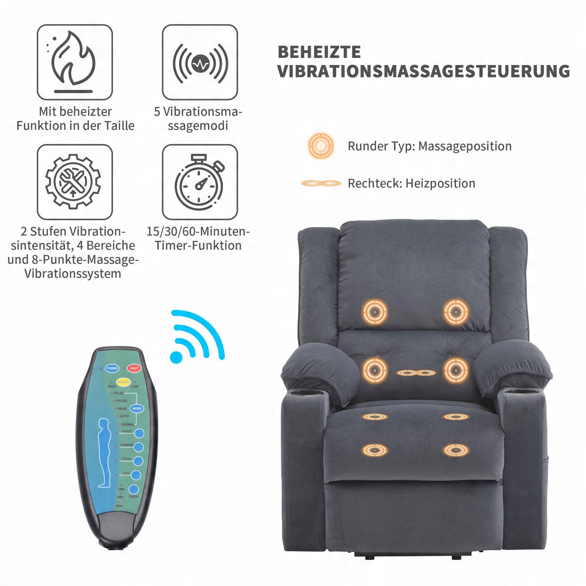 Электрический телевизионный стул с подъемами, массажирующим креслом с функцией электрического наклона с 2 чашками, массажными функциями, функцией нагрева, массажом с серым пультом дистанционного управления