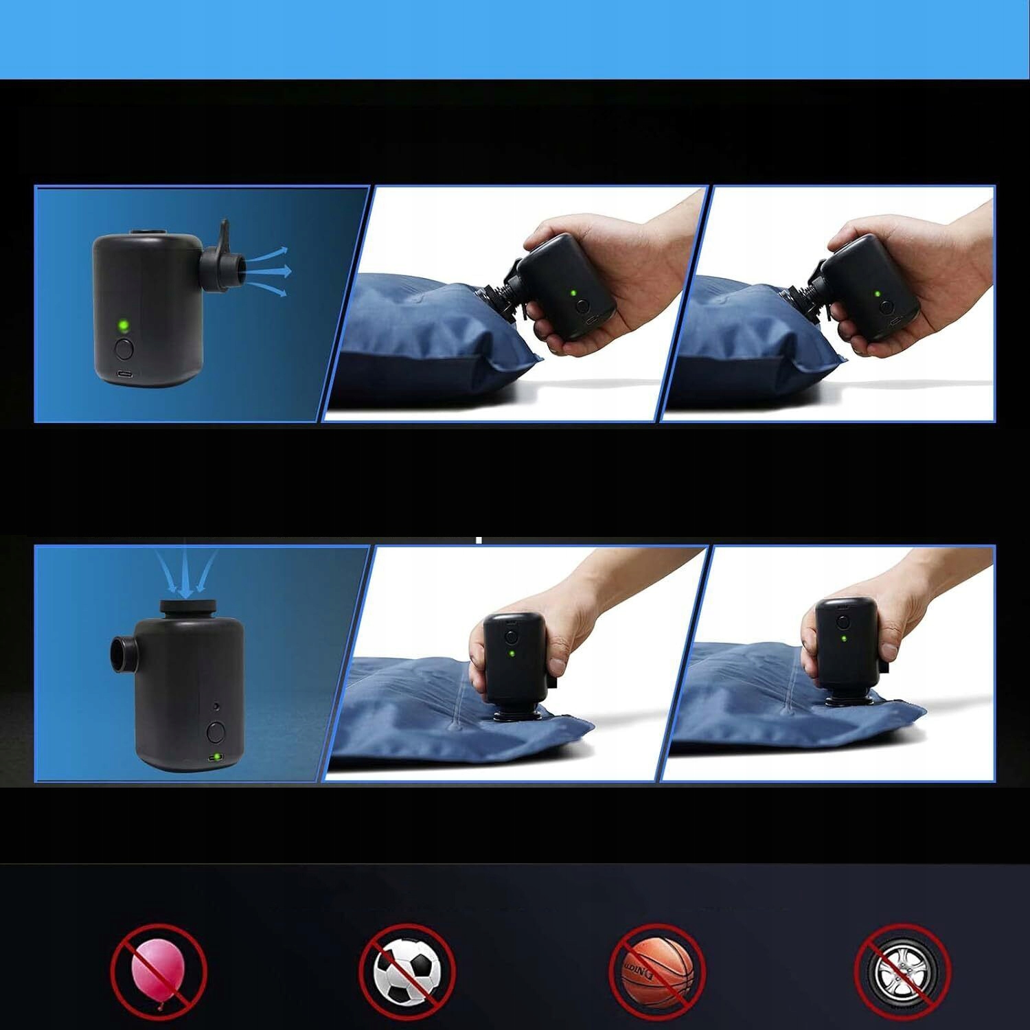🌊 【4 разные насадки】 - Электрический воздух Насос оснащен 4 различными типами насадок для удовлетворения различных потребностей в перекачке. Идеально подходит для надувных матрасов, надувных бассейнов, кругов для плавания, детских бассейнов, мячей для йоги и других надувных изделий. Его также можно использовать для удаления лишнего воздуха из вакуумных пакетов.