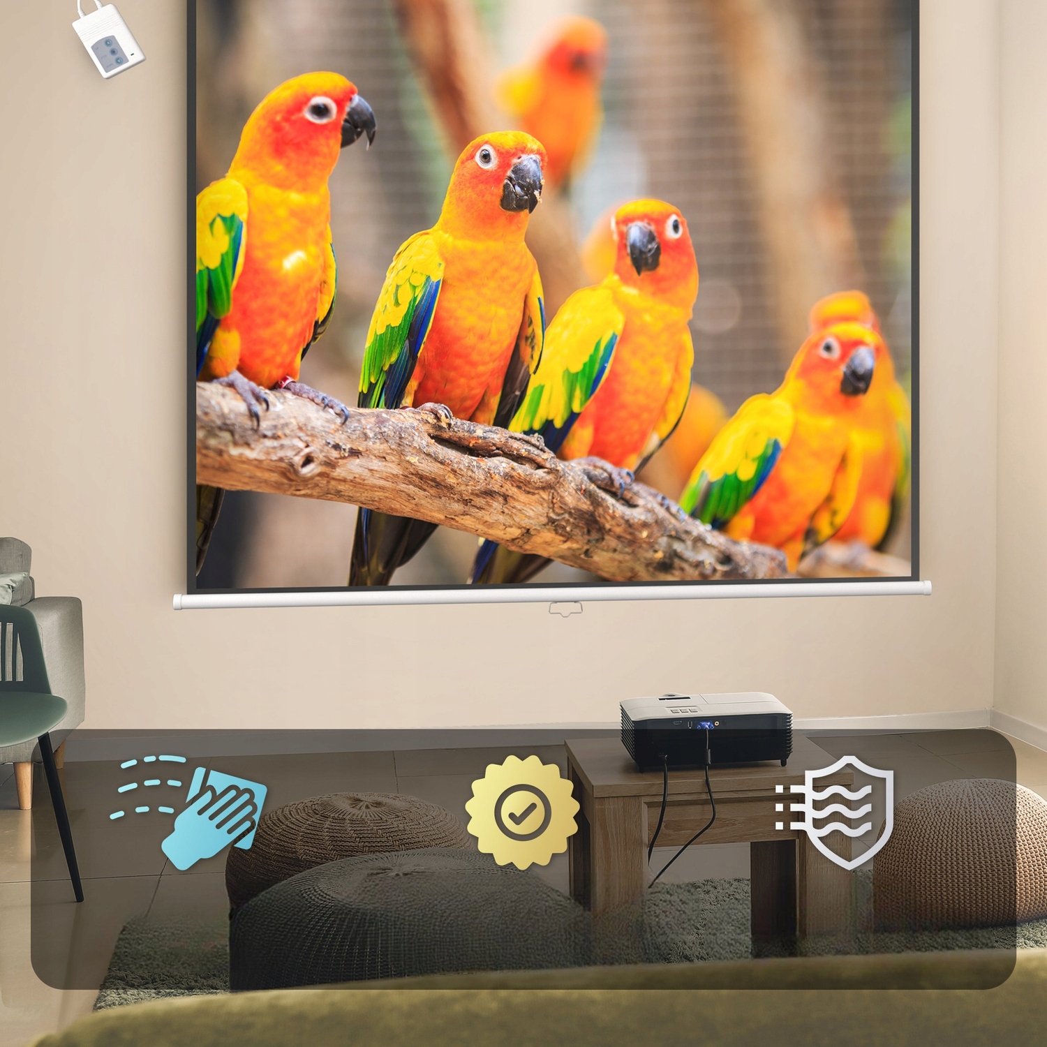 Универсальный свернутый экран обеспечивает наилучшие кинематографические ощущения и превращает каждую стену в проекционную поверхность. Независимо от того, являются ли это фильмы, спорт или презентации - благодаря нашему экрану проектору, вы всегда получите оптимальные результаты проекции. Введите качество кино прямо в ваш дом.