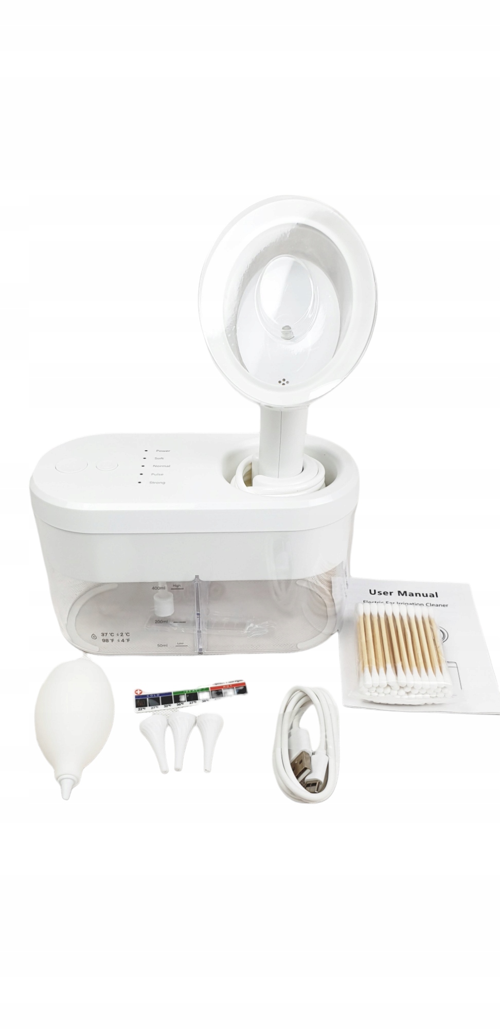<р> • Безопасно и эффективно: кожа уха очень чувствительна и требует особого ухода. Электрический очиститель ушей с интеллектуальной системой управления, обеспечивающей стабильное и безопасное давление воды. После включения устройства для удаления серы и выбора канала электрическое устройство забирает воду из резервуара для воды через трубку подачи воды и распыляет ее в ушной проход для очистки ушного канала. <р> • 4 режима давления: 4 настройки давления воды – мягкий режим, нормальный режим, импульсный режим, сильный режим. Вы можете найти идеальное давление для своих нужд. (Совет: в первый раз рекомендуется использовать «Мягкую» модель, после адаптации режим постепенно увеличивается) <р> • Комплект поставки: полная система очистки ушей включает в себя 1 электрический набор для чистки ушной серы 400 мл, 3 мягких ушных вкладыша, 1 шарик для продувки воздухом, 1 ватный тампон, 1 руководство пользователя (может быть недоступно на польском языке). язык). (Перед использованием внимательно прочитайте инструкцию (она может быть недоступна на польском языке). Чтобы избежать дискомфорта, промывайте уши теплой водой.✅ВАЖНАЯ ИНФОРМАЦИЯ ДЛЯ КЛИЕНТА