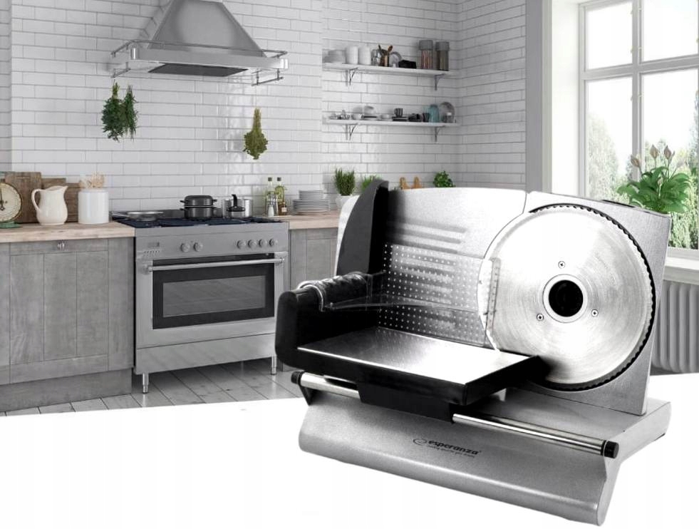 Электрический слайсер esperanza для хлеба, холодных порезов, сыра, овощей будет облегчать ежедневную режущую пищевые продукты до ровных и простых ломтиков соответствующей выбранной ширины. Свежий хрустящий хлеб Вы можете нарезать на равные ломтики , а нарезание ham или сыр для тонких ломтиков больше не будут проблемой.