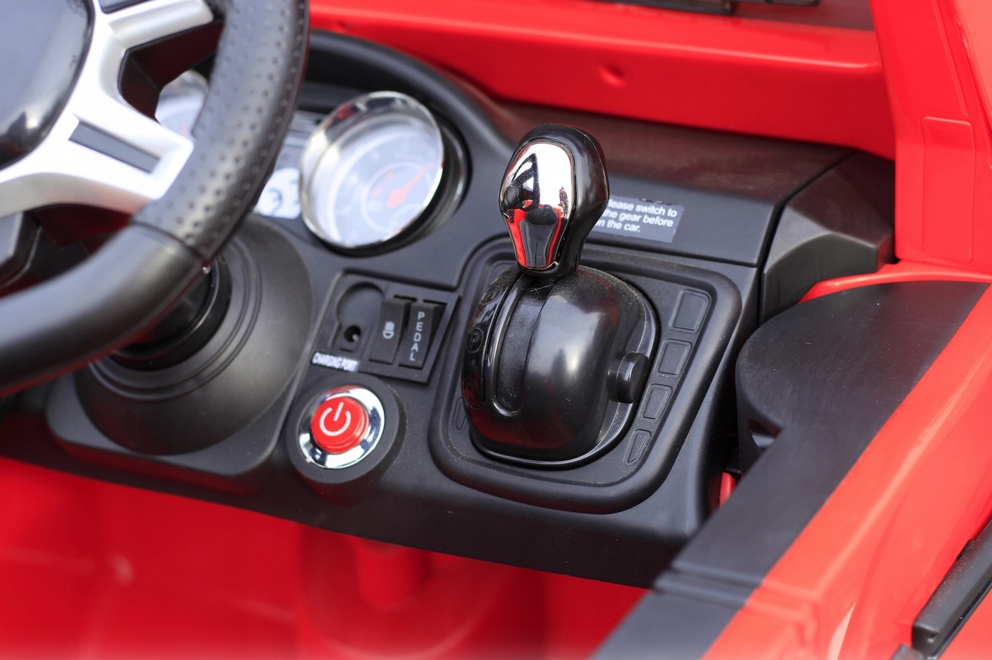 Это мощный, оригинальный, лицензионный, хорошо оснащенный двухместный автомобиль с аккумуляторным питанием. Он приводится в движение шестью мощными электродвигателями, питаемыми от аккумулятора. Безопасные уроки вождения обеспечиваются дополнительным выдвижным сиденьем для родителей и входящим в комплект пультом дистанционного управления 2,4G, дающим родителям полный контроль над автомобилем.
