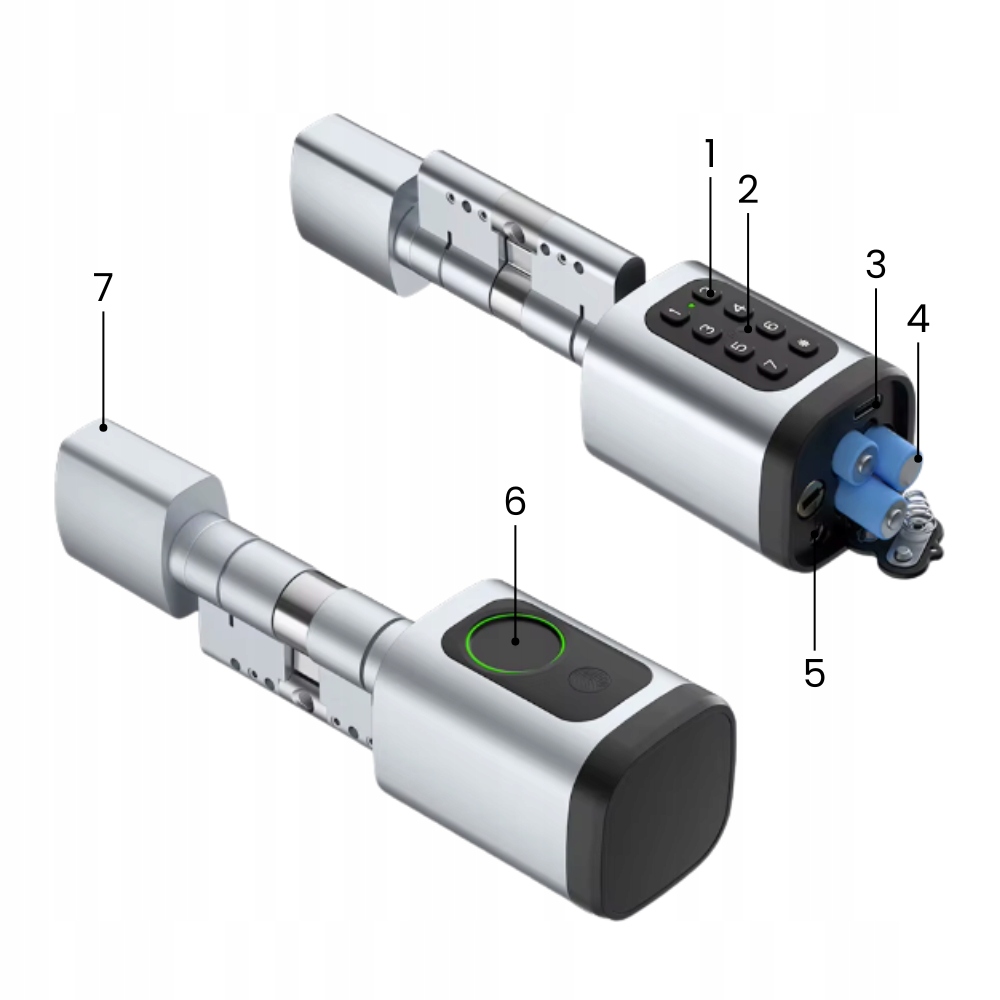 - Методы разблокировки: Мобильное применение, отпечаток пальца, карта 13,56 МГц, PIN, PIN, PIN, PIN, PIN, PIN-ключ