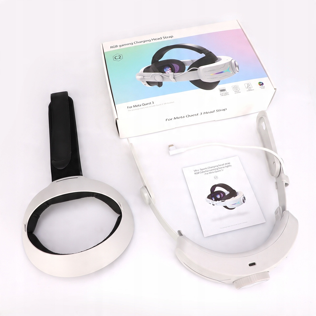 ✅ 【Красочный бренд RGB】 Специально разработан для Meta Quest 3, оснащенный красочным светодиодным маркером и градиентным светом: режим градиента: режим градиента RGB