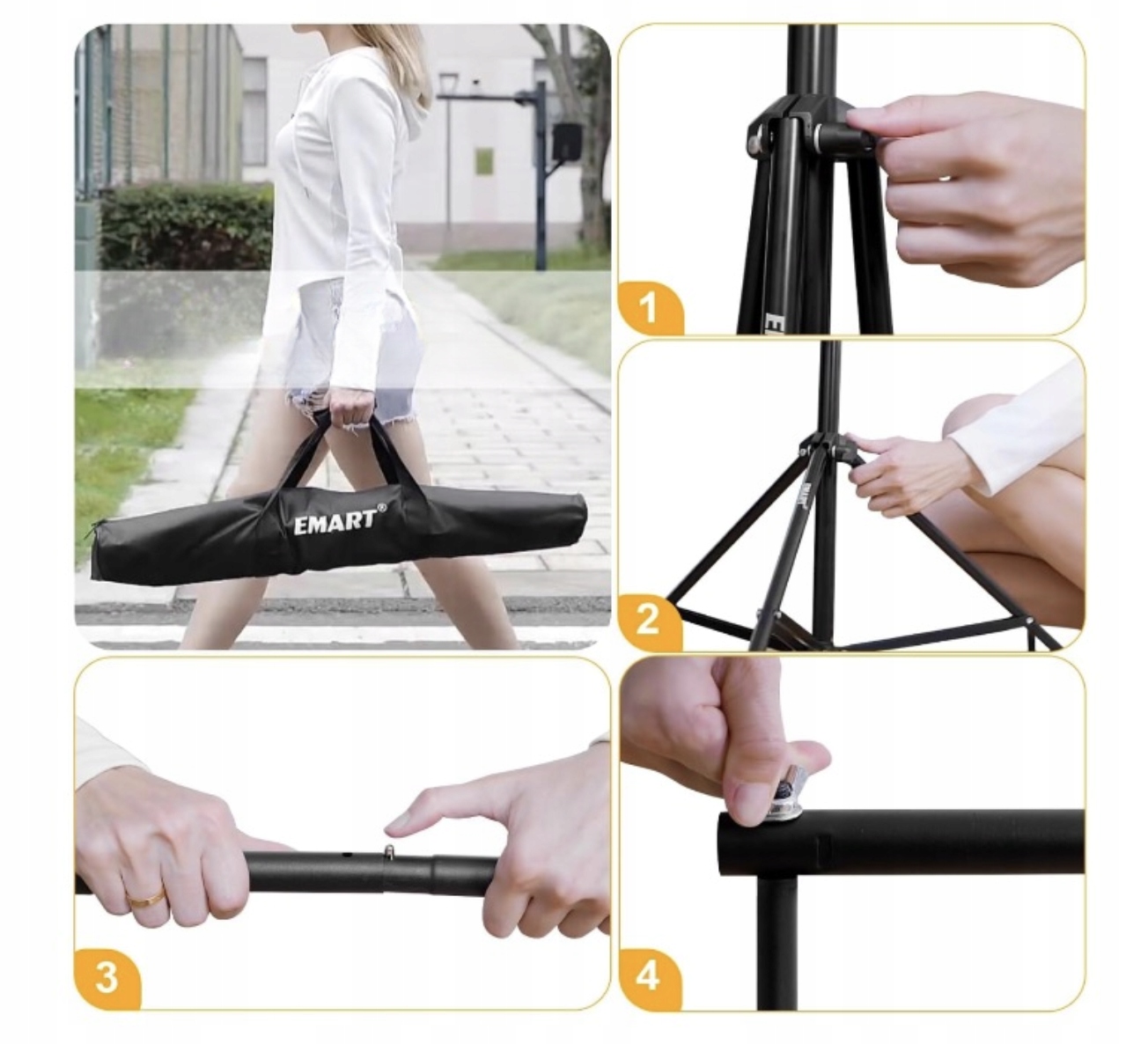 set emart set на фоновых подставках - это профессиональный инструмент, который обеспечит вам идеальную стабильность и гибкость во время каждой фотосессии. С регулируемой шириной и высотой, фон легко сопоставить с различными пространствами, а сплошная алюминиевая структура и мешки с песком гарантируют надежность во время работы