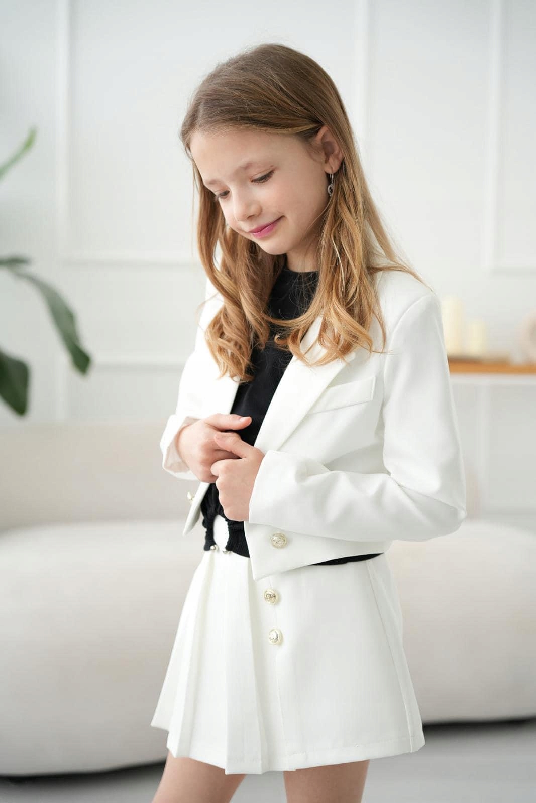 ekri Color/ Broken White дает куртке дежурный, классический и универсальный персонаж. Бежевый - это оттенок, который легко сочетается с другими цветами, что делает куртку универсальным элементом гардероба. Длинный рукав делает куртку подходящей для прохладных дней, добавляя девичье стилизацию элегантности и тепла. Золотые пуговицы добавляют девичьего персонажа в куртку. Воротник добавляет элегантность к куртке и подчеркивает шею. Он может иметь разные формы, от классического воротника до более декоративных вариантов. Такая куртка будет идеально подходит для более формальных результатов или особых случаев, добавляя девичье гардеробное элегантность и стиль. Это также отличный вариант носить с платьями, юбками или брюками, создавая всеобъемлющую и модную стилизацию.