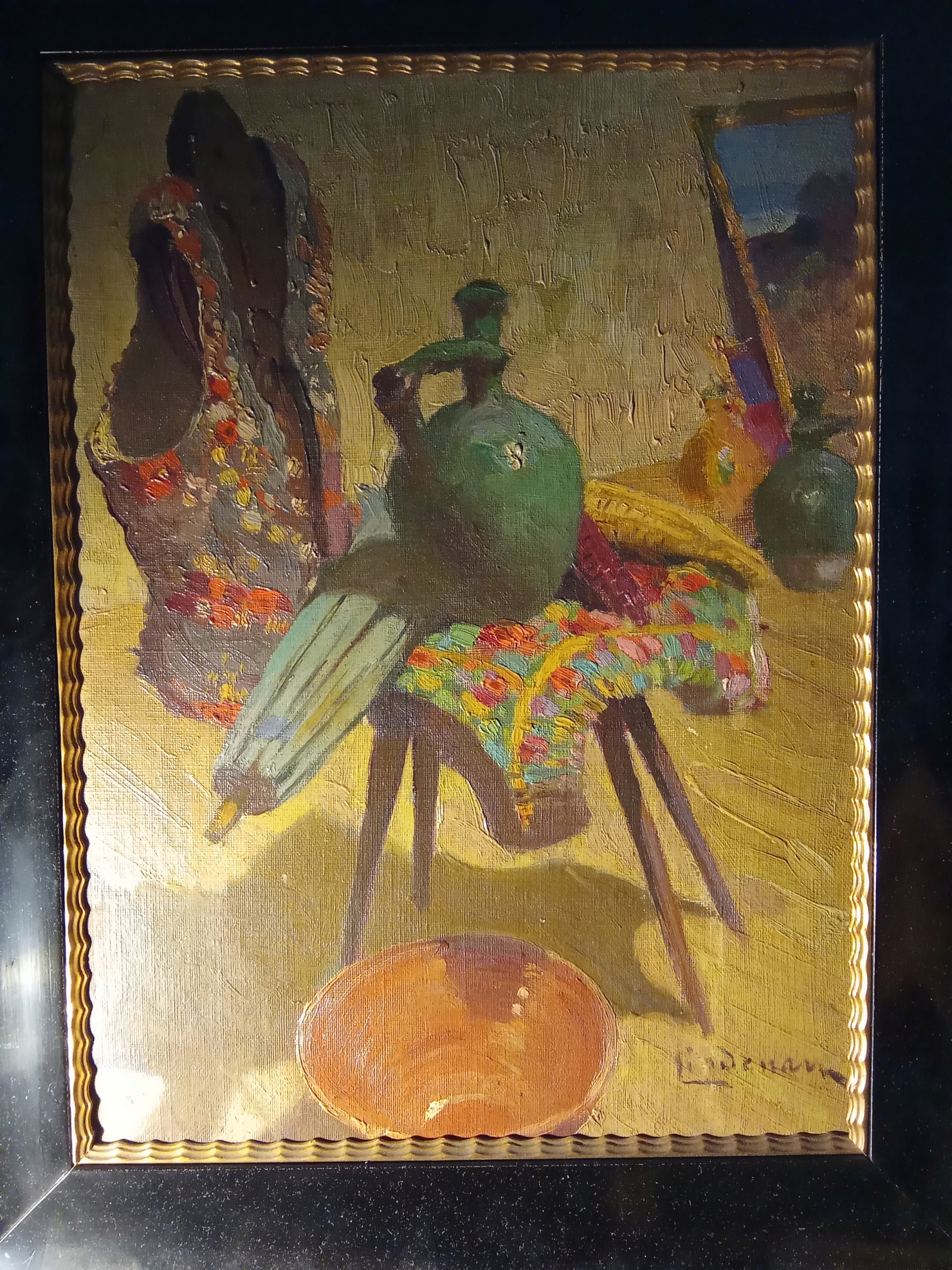 ЭМИЛЬ ЛИНДЕМАН - НАТЮРМОРТ С НАРОДНЫМ КОСТЮМОМ И ЗОНТОМ