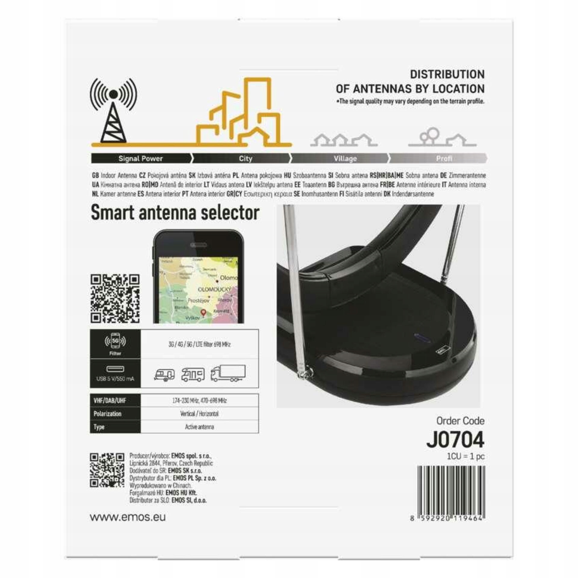 Эмос Комната Антенна Сити Кольцо-C500, DVB-T2, DAB, LTE/4G/5G J0704 Фильтр