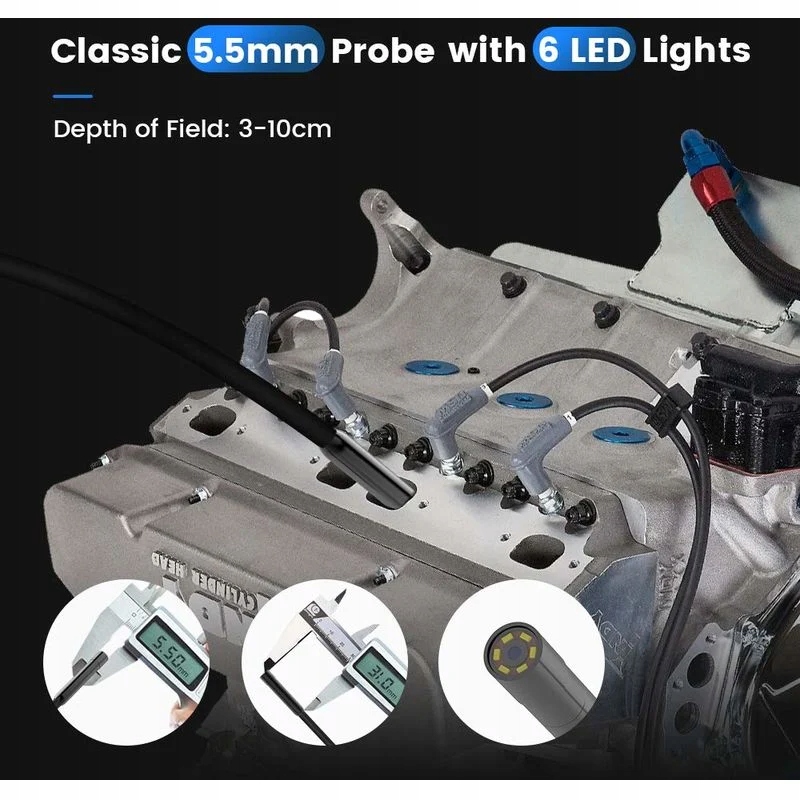 Рабочий эндоскоп ТЕСЛОНГ, диаметр зонда 5,5 мм, качественная запись Мощный фонарик, водонепроницаемый, IP67, Full HD, IPS HD-дисплей 4,5 дюйма