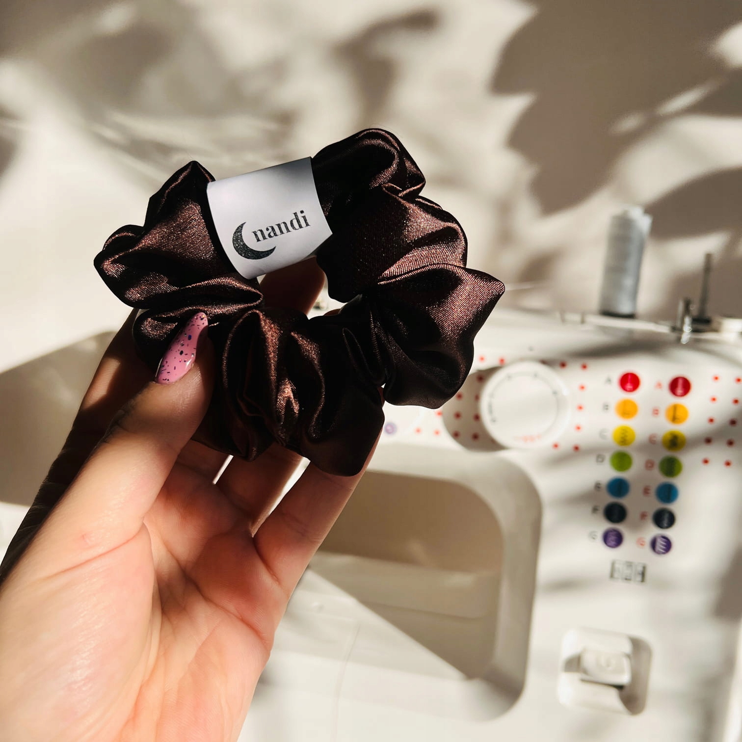 Разастика для волос атлас Scrunchie Dark Chocolate