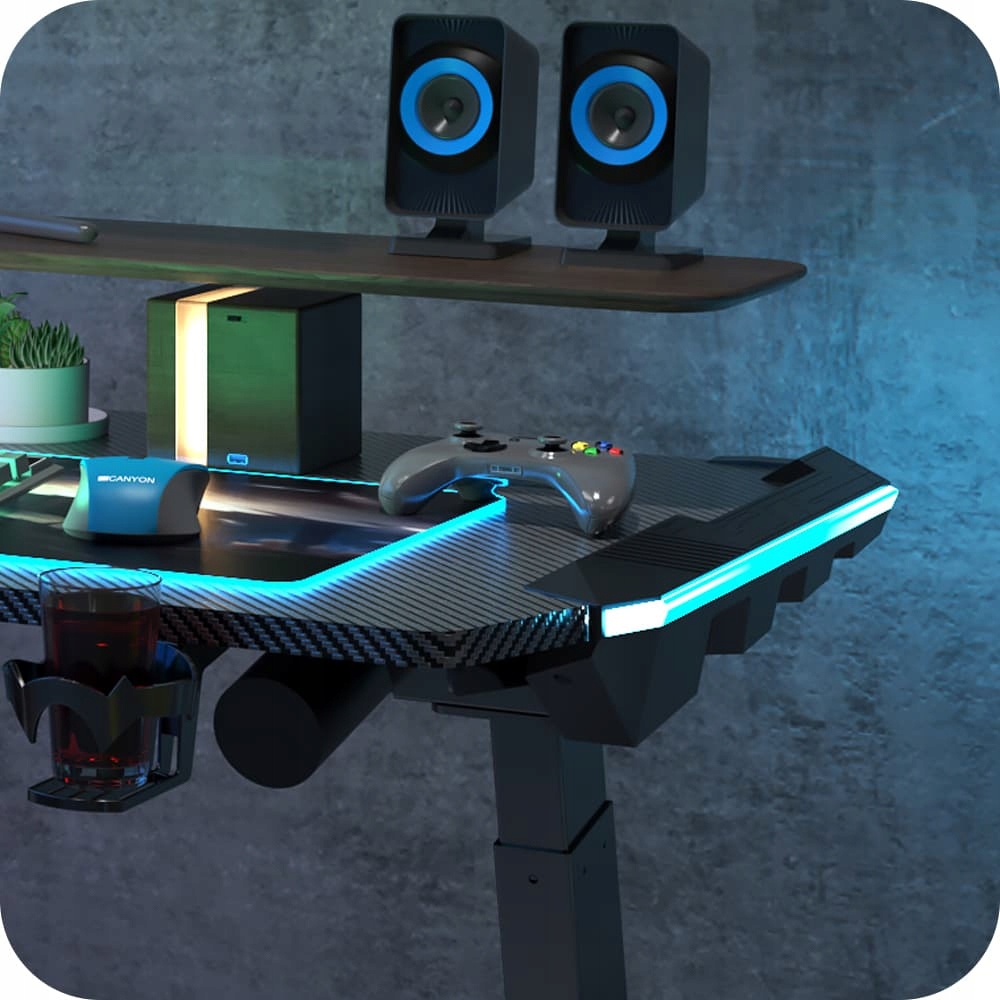 ✅ Стол GXE-100 -это инновационная версия классического игрового стола с регулировкой высоты. Благодаря прочной, слегка наклонной раме, стол выделяется из других моделей. Этот набор обеспечит потрясающий опыт, играя благодаря аксессуарам: держатель напитков, держатель для наушников. Просторный топ позволит вам легко установить два монитора, клавиатуры и другие необходимые аксессуары. Светодиодная подсветка придаст вечерней игре незабываемую и уникальную атмосферу