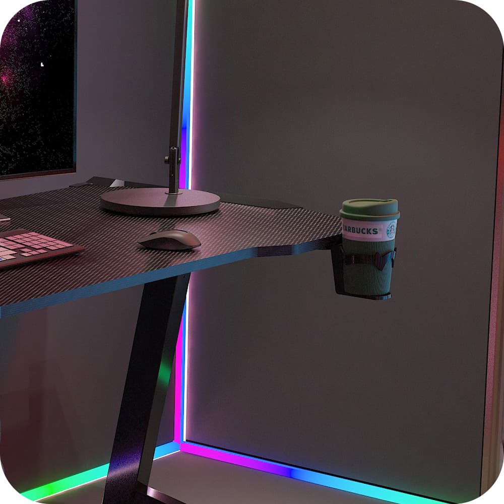 Ничто не добавляет персонажа в любимую игру игры, например, правильное окружение. Благодаря встроенным светодиодным панелям на более коротких краях стола вы можете дать своему месту уникальный персонаж, выбрав один из 7 доступных цветов. Внешнее USB -питание компьютера или зарядного устройства