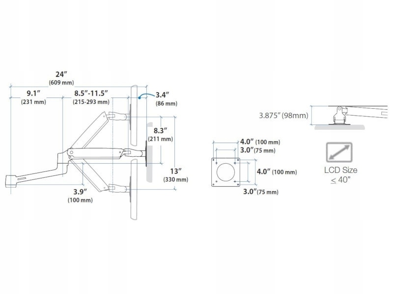 - Идеальное местоположение - экран можно установить точно в то, в котором мы хотим. 34 ". Когда монитор не используется, вся структура может быть сложена и вставлена, например, под полками или в шкаф