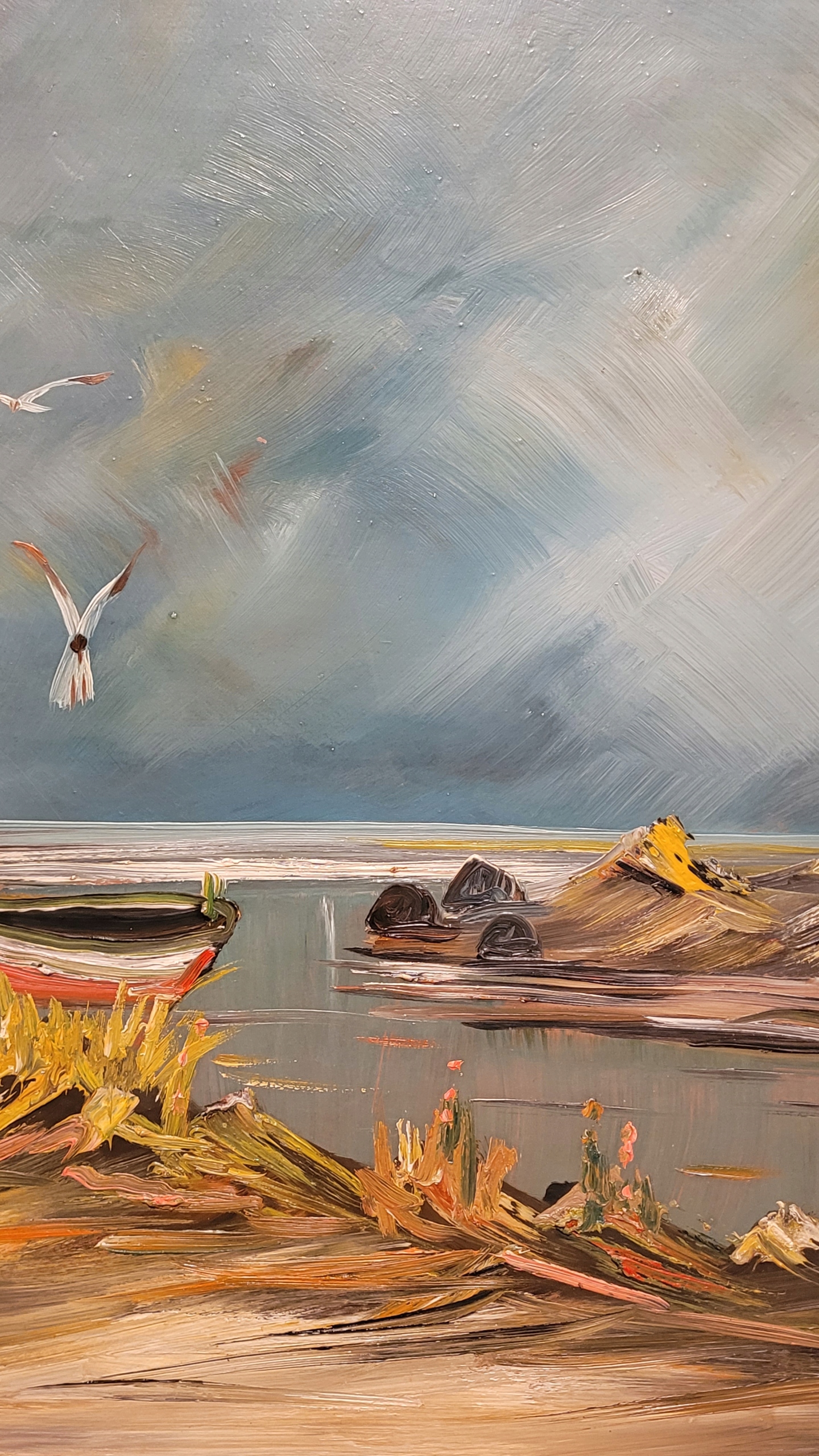 Эрлинг Dyremose - «Sea Shore», красивая нефтяная картина.