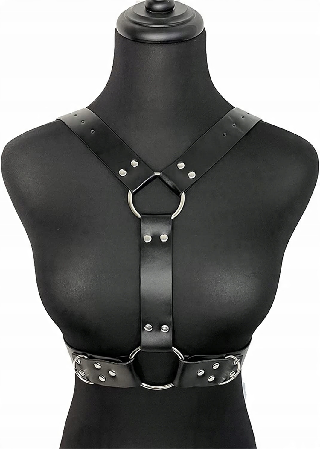 Эротическое белье БДСМ изготовлено из < б>экологическая кожа высокого качества, соединенная металлическими элементами.