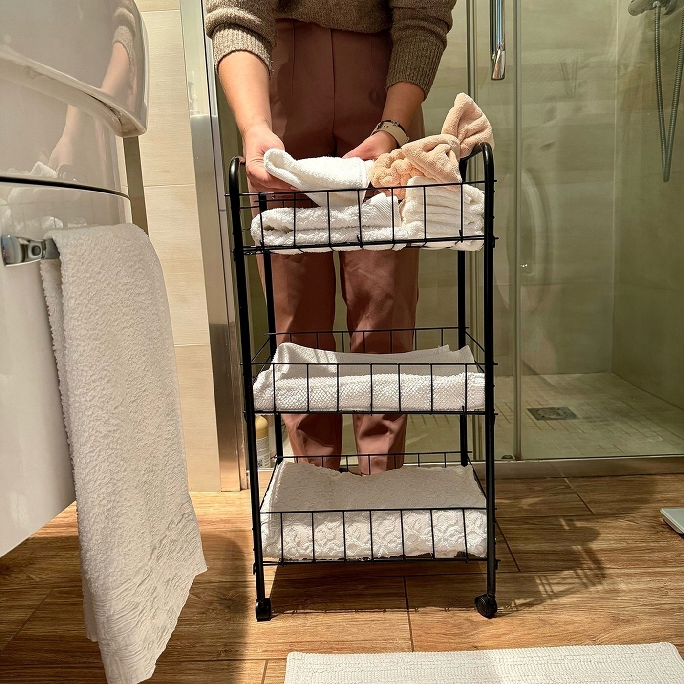 ШКАФ НА КОЛЕСАХ С ТРЕМЯ ПОЛКАМИ, МЕТАЛЛИЧЕСКИЙ ОРГАНИЗАТОР ДЛЯ ВАННОЙ