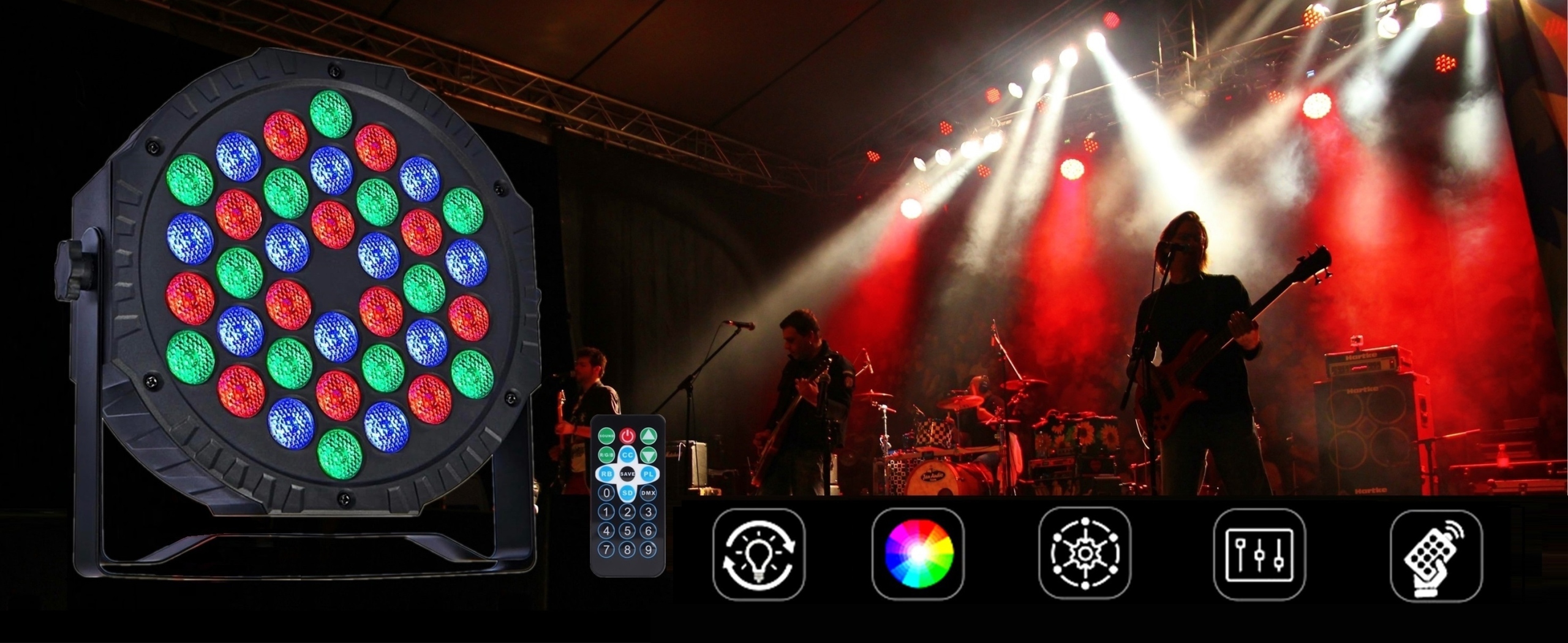 Сценическая лампа RGB с 36 супер -лампочками и регулировкой 360 °
