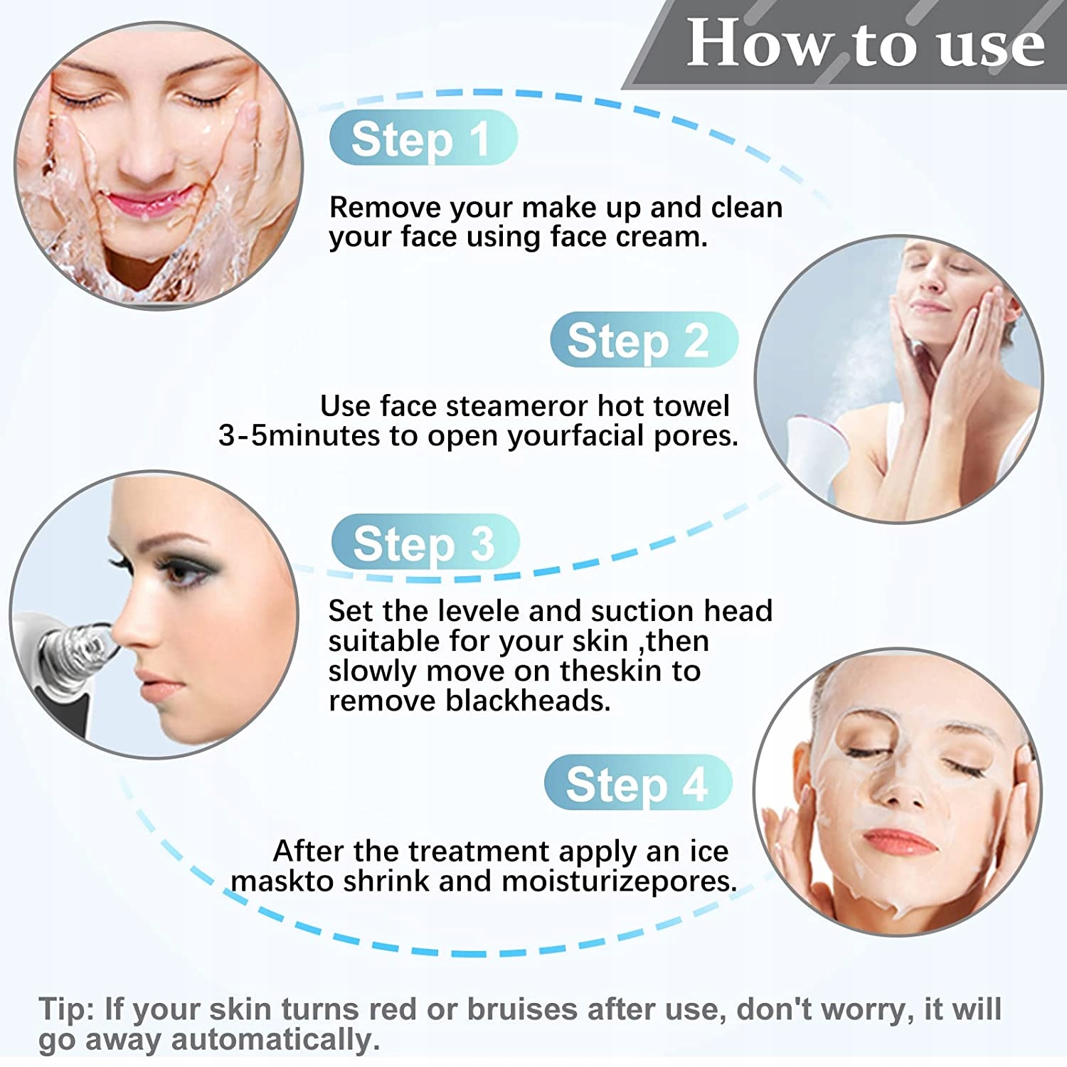 - Дизайн для всех проблем с лицом. 4 сменные головки зонда и 3 регулируемых режима всасывания для всех проблем с лицом, легко устраняют угри в носу, угри, прыщи, прыщи, угри и т. д.