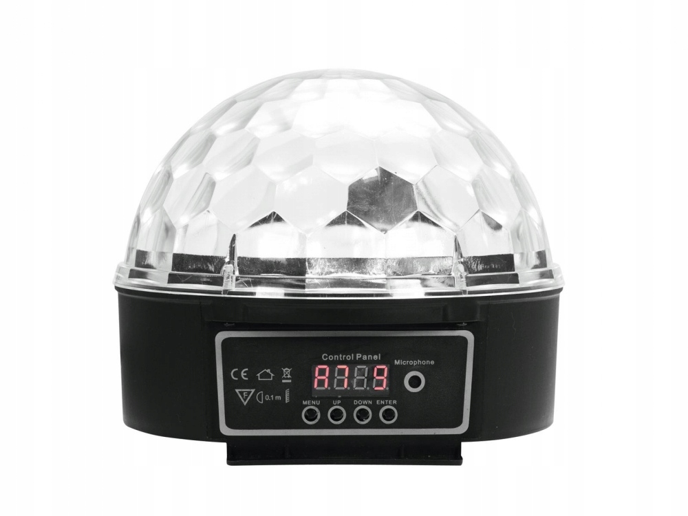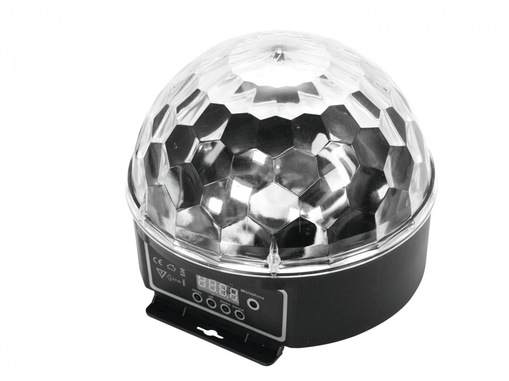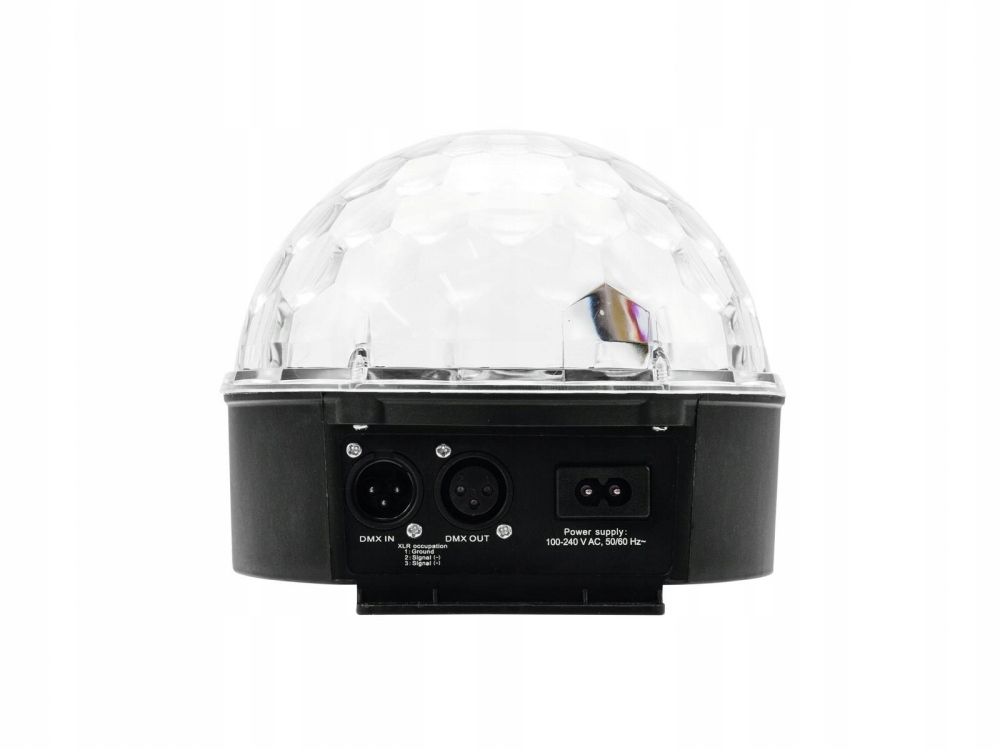 - Functions: smooth color change, color fading, Dimmer, настройки строба, направление вращения и скорость, установленные в режиме Auto и DMX; Master/Slave