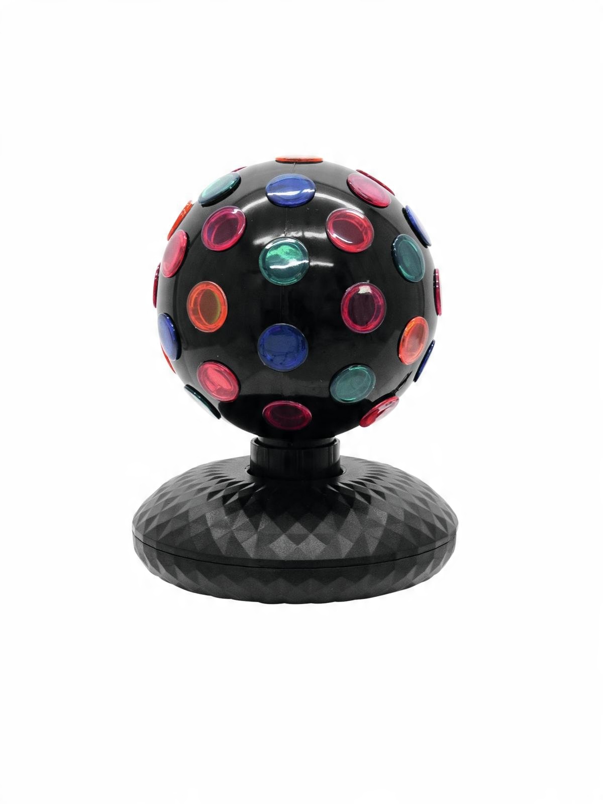 Шар вращается вокруг своей оси, излучая цветной свет и проецируя его в комнату через граненую поверхность. MSB-15 не требует настройки: просто подключите его и наслаждайтесь работой! Современная светодиодная технология также обеспечивает чрезвычайно низкое энергопотребление, что делает мяч идеальным для частого использования.