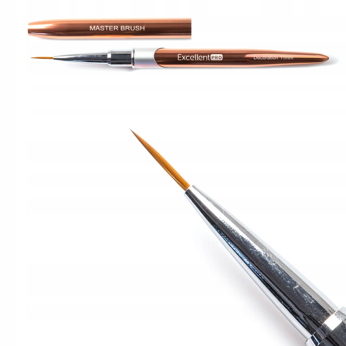 Кисть «Excellent PRO» — профессиональный высококачественный инструмент для украшения и укладки ногтей. Изготовленная из гибкой синтетической щетины высочайшего качества, она имеет тонкую форму, облегчающую точное декорирование. Благодаря соответствующей пропитке при производстве щетина щетки долговечна и надежна. Элегантная металлическая ручка цвета розового золота и серебряный колпачок придают щетке стильный вид, которая станет не только незаменимым инструментом, но и украшением вашей гостиной. Кроме того, колпачок защищает щетину и обеспечивает гигиеничное хранение.