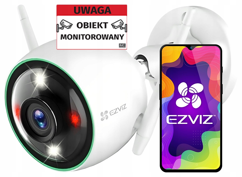 Уличная Wi-Fi камера с цветным ночным видением и разрешением Full HD (двойная подсветка) — C3N EZVIZ + наклейка «Объект наблюдения»