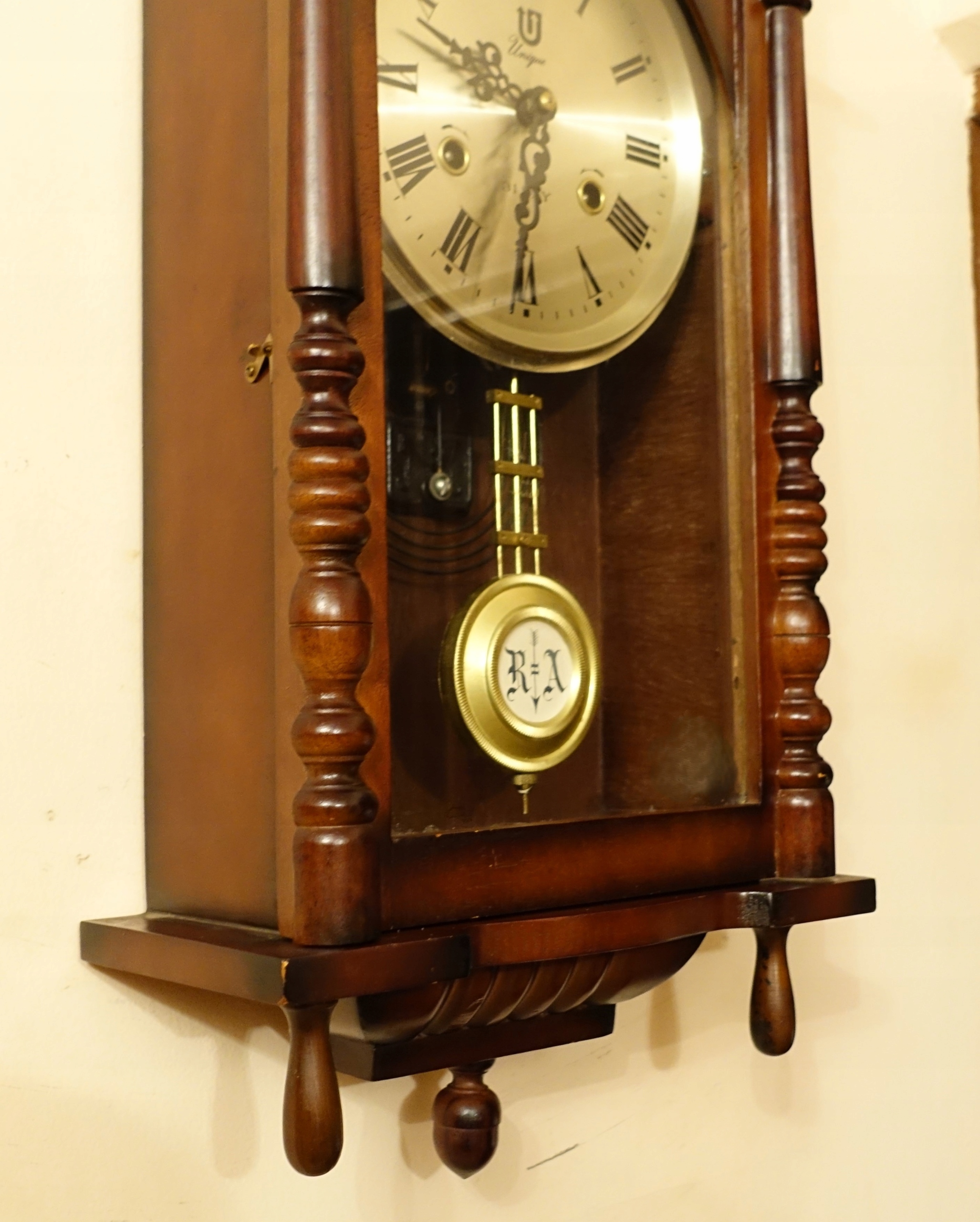 Часы F.H.S от известного и авторитетного бренда в красивой эклектичной коробке. Механизм часов работает и работает правильно. Механизм часов отбивает полные часы и полчаса спиральным гонгом.